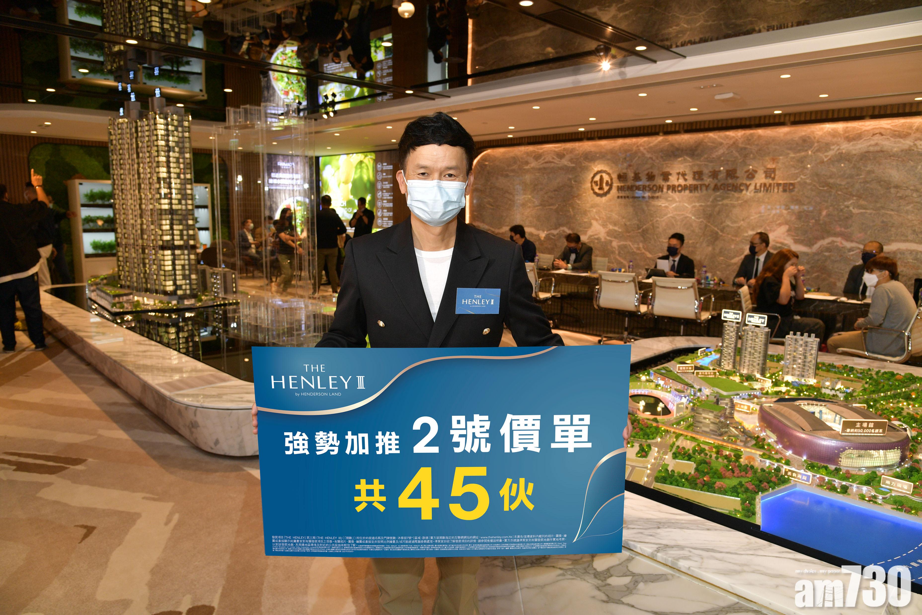 恒基地產(012)啟德THE HENLEY第三期(THE HENLEY III)市場反應不俗,恒基物業代理營業(一)部總經理林達民公布最新加推第2號價單,涉45伙,維持最高5%折扣優惠,折實售價由669.2萬元起,折實平均呎價28,682元,較首張價單28,200元高約1.7%。截至今晚9時,三日累收446個認購登記,當中中介人佔24票。以兩張價單合共126伙計,超額逾2.5倍。