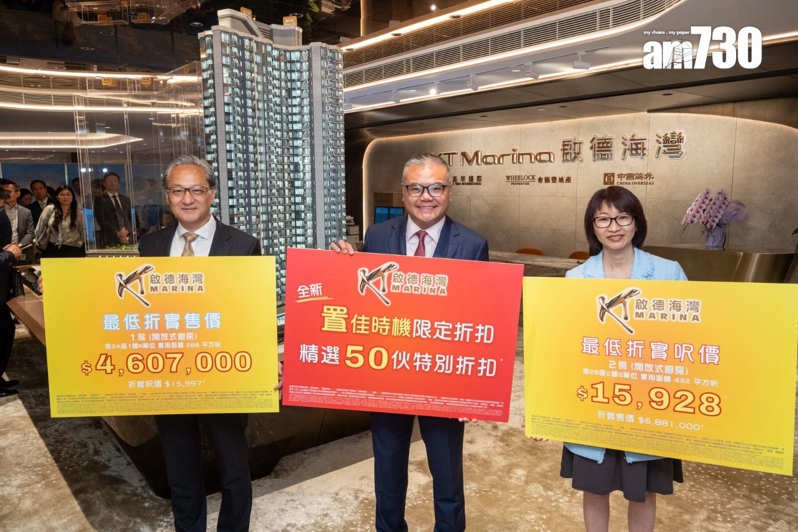 中國海外地產董事總經理游偉光指,50伙精選單位可享最高折扣介乎29.75%至38.5%,涵蓋16伙一房及34伙兩房,折實售價由406.7萬元起,折實呎價15,928元,