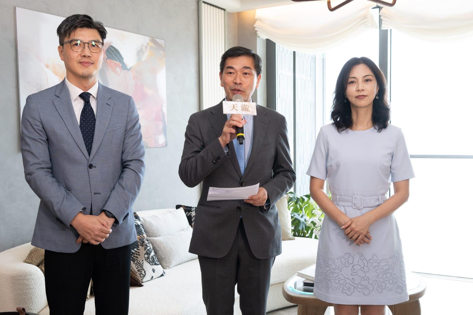 黃光耀(中)稱,「天瀧」將舉辦一系列貴賓參觀活動,率先邀請發展商貴賓及銀行高端客戶於本周末起親臨參觀會所及現樓單位。(陳奕釗攝)