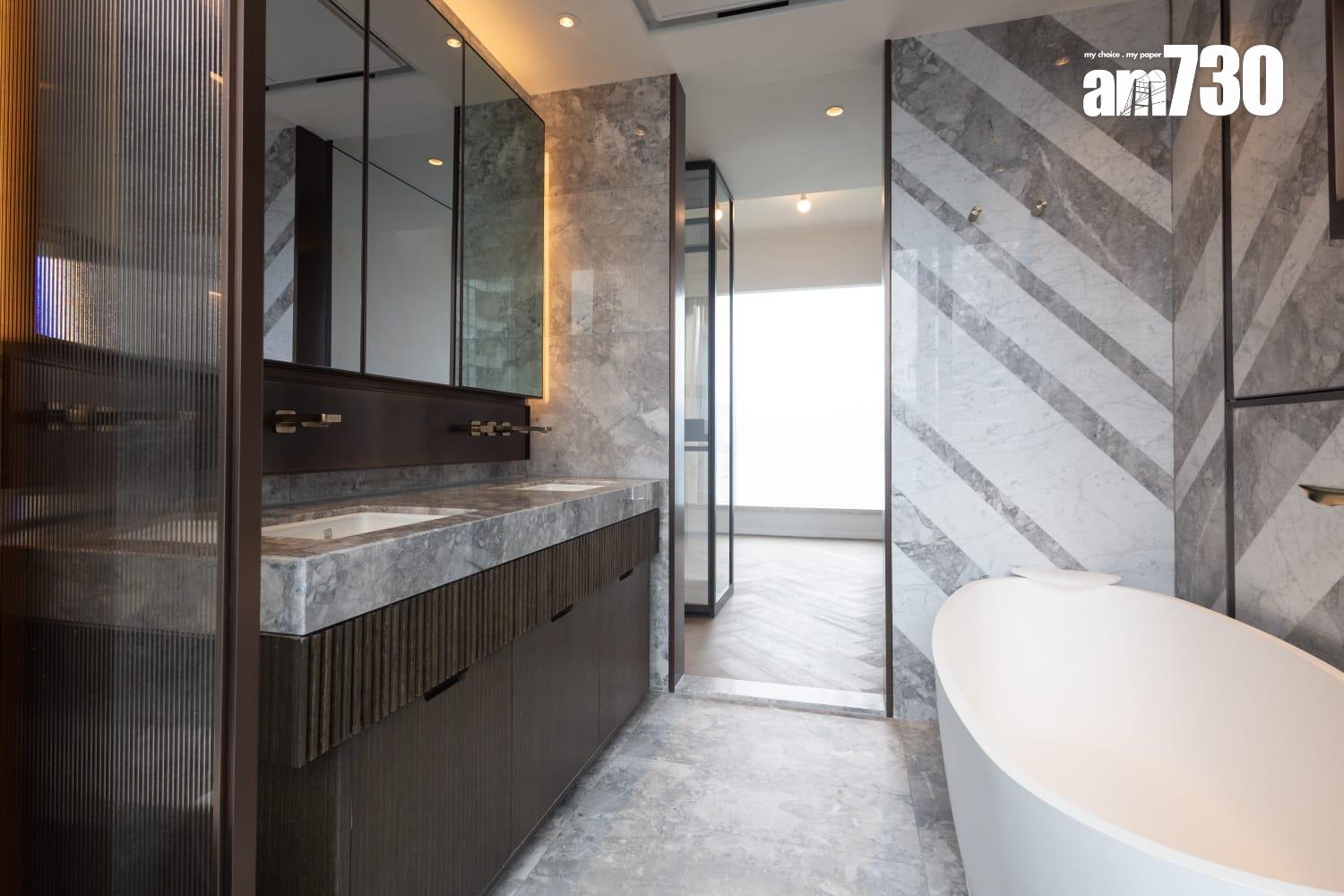 客飯廳長約7.1米、闊約4.2米,間隔方正實用,布局分明。全落地玻璃趟門 接連約3.9米闊的啞金色流線型露台。每個房間間隔方正實用,寬敞舒適。原主人睡房與睡房之間的間隔牆被移除,打造一個約5米闊的主人睡房。主人睡房配以意大利Poliform Display Closet,並裝設英國Claybrook獨立浴缸、美國衛浴品牌Kohler、意大利Cristal化妝品雪櫃及HKT Smart Mirror。