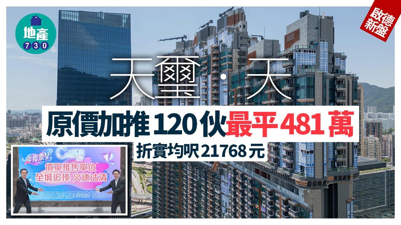 天璽.天原價加推120伙 最平481萬 折實均呎21768元|啟德新盤