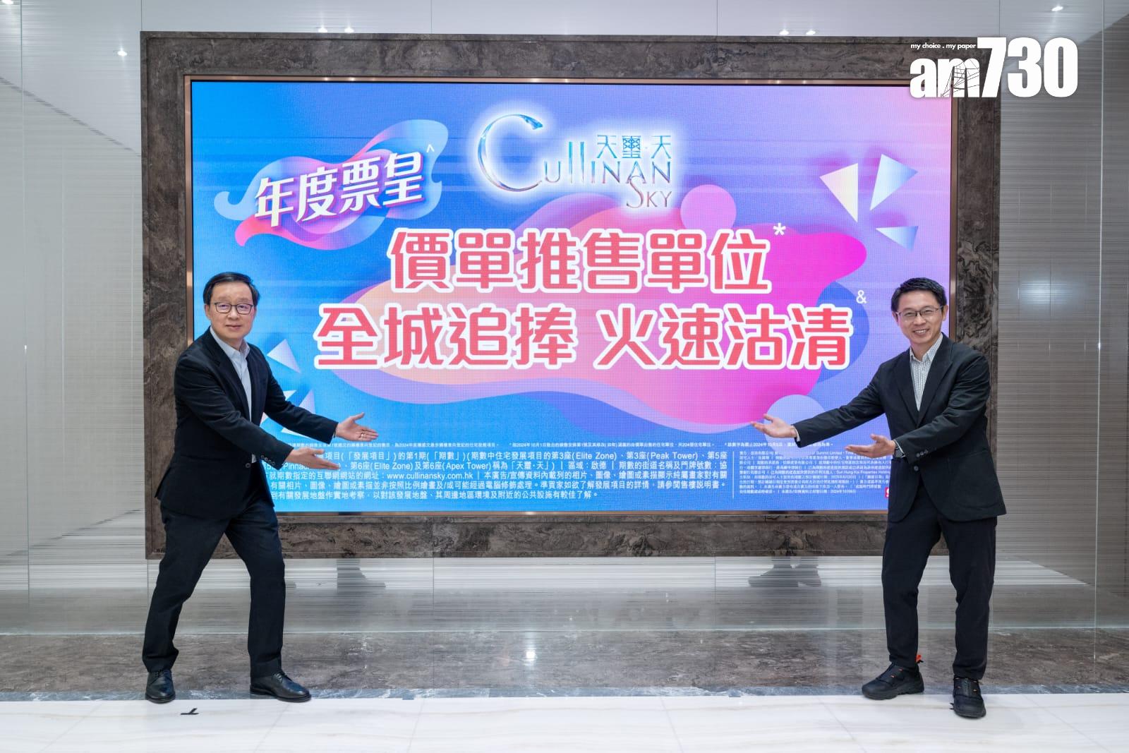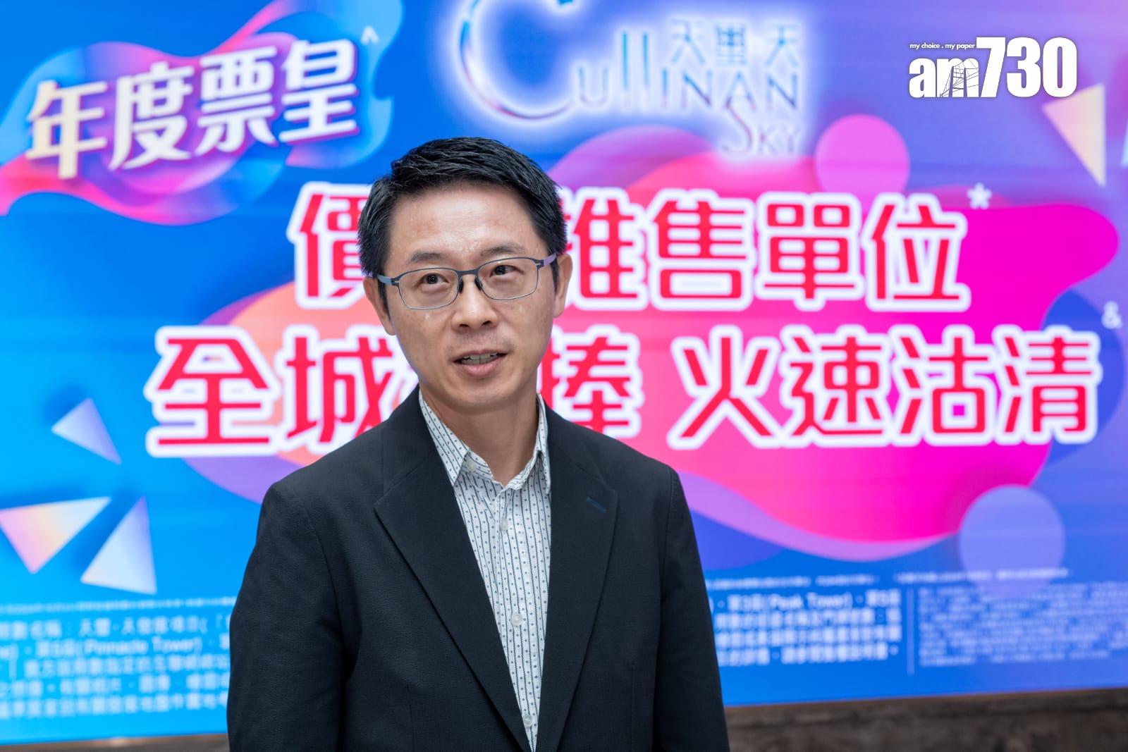 胡致遠補充,項目昨日沽清價單發售的204伙,套現逾15億元。當中A1及A2組大手客時段合共錄得18組客,當中有9組買家購入6伙至8伙,涉資約4,400萬至6,600萬元;另有9組買家購入3伙至5伙,涉資超過2,000萬元。
