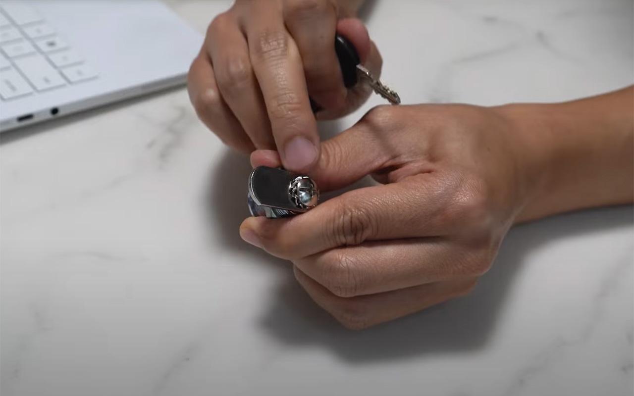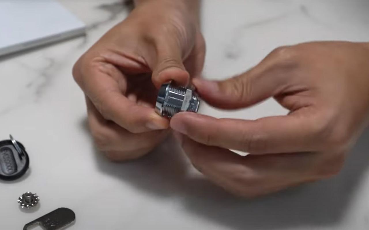 - 取出信箱的鎖膽,將夾著信箱的圈安裝在鎖膽上,這個圈拆的時候鑽出來,也可以換一個新的。