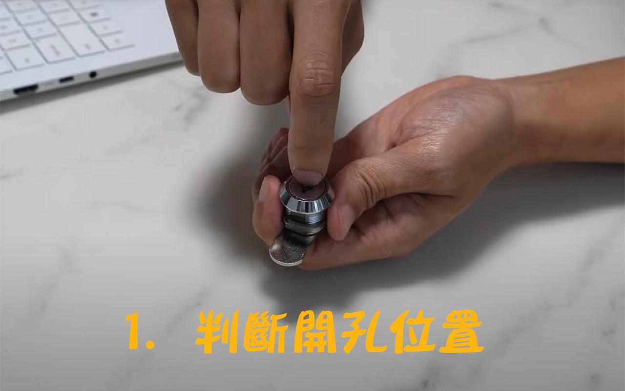 首先,你要判斷一下開孔的位置,裝鎖需在抽屜上鑽洞,鑽甚麼位置,視乎你希望鎖脷轉動後到達什麼位置。