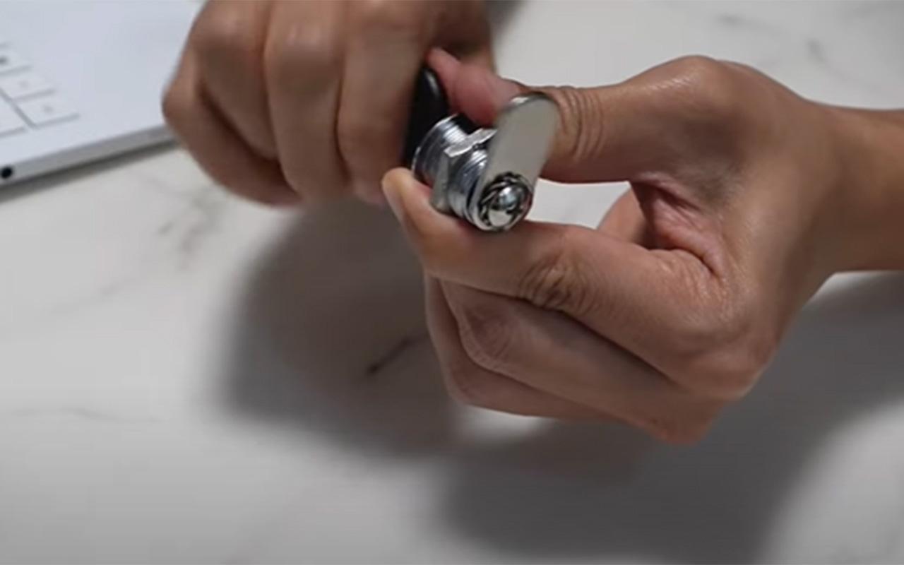 更好的方法是在櫃門安裝一個金屬,當鎖脷轉向上時,頂著它,抽屜就不能開,到轉向打橫時才能開。