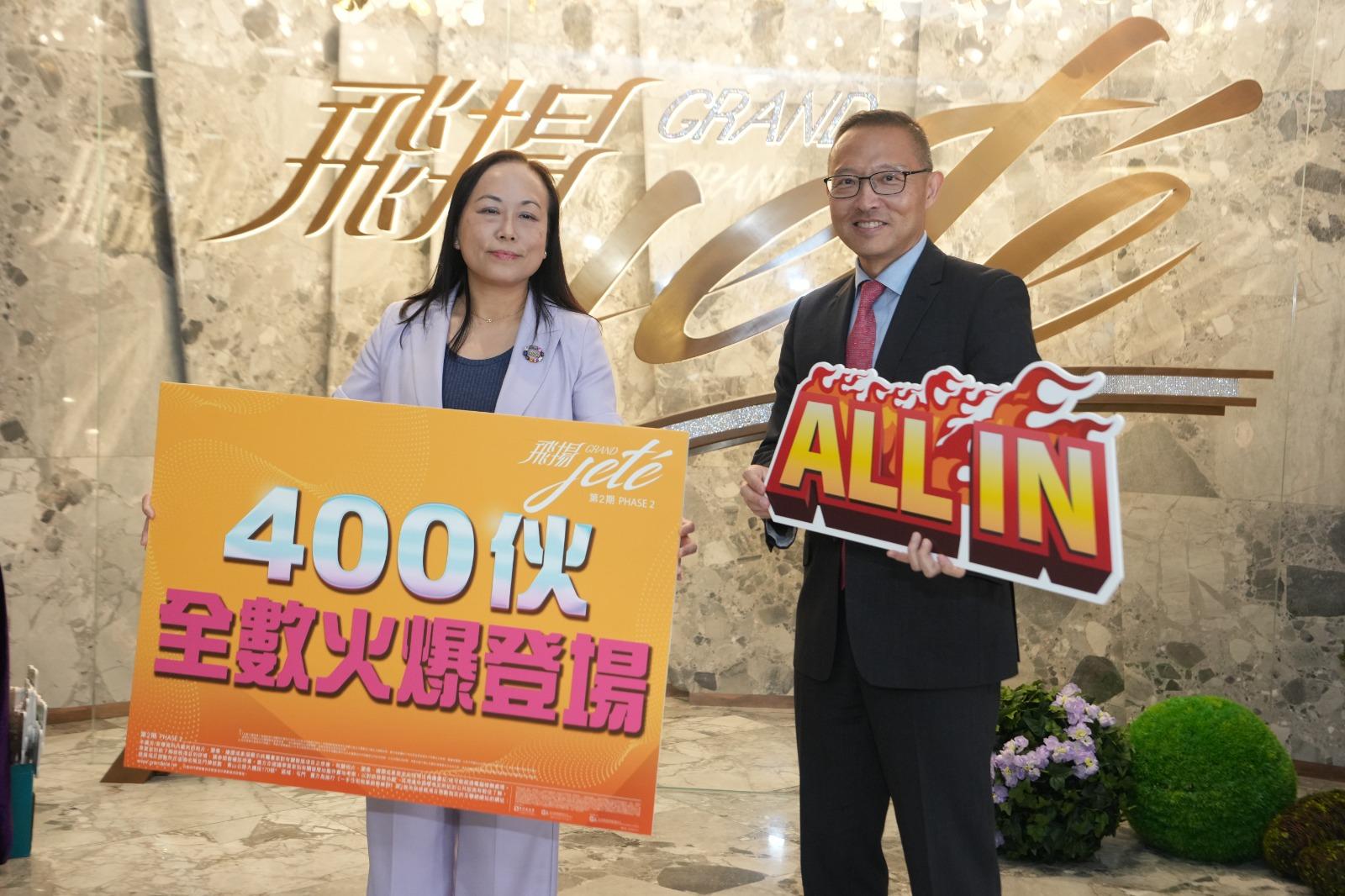飛揚第2期將於3月25日首輪「一炮過」推售全盤400伙,包括220伙一房、140伙兩房及40伙三房,單位實用面積介乎263至722方呎。價單定價由361.1萬至1,248.6萬元,呎價介乎12,990元至18,568元。單位折實售價則由306.9萬至1,036.3萬元,折實呎價11,042元至15,782元。以折實價計算,有約74%單位售價低於600萬元。