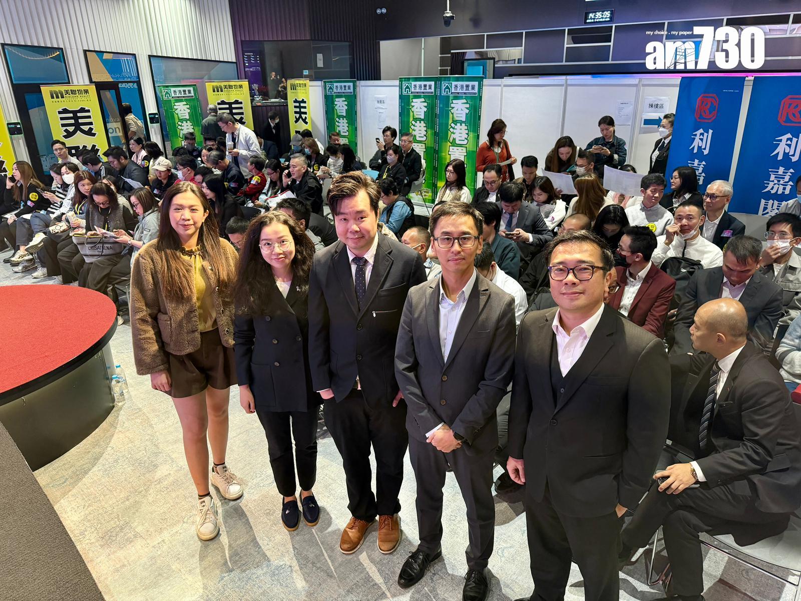 益兆集團控股副總裁林浩(左三)、益兆集團控股集團總經理游毓璿小姐(左二)、益兆集團控股銷售及營銷總監黃詩詠(左一)、俊和物業發展控股總經理何俊威(右二)及俊和物業發展控股物業發展高級經理潘燿基(右一)。