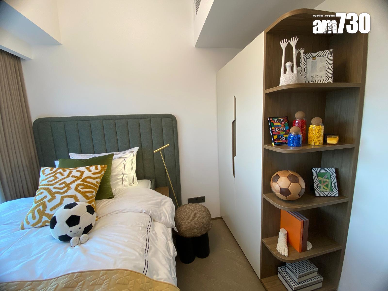 睡房1間隔方正,露台位置連接客廳露台,採用趟門設計,光線充足,室內更見明亮通透。睡房2可設為兒童房,室內空間靈活實用,擺放單人床後空間寬闊,迎合不同家庭需要。