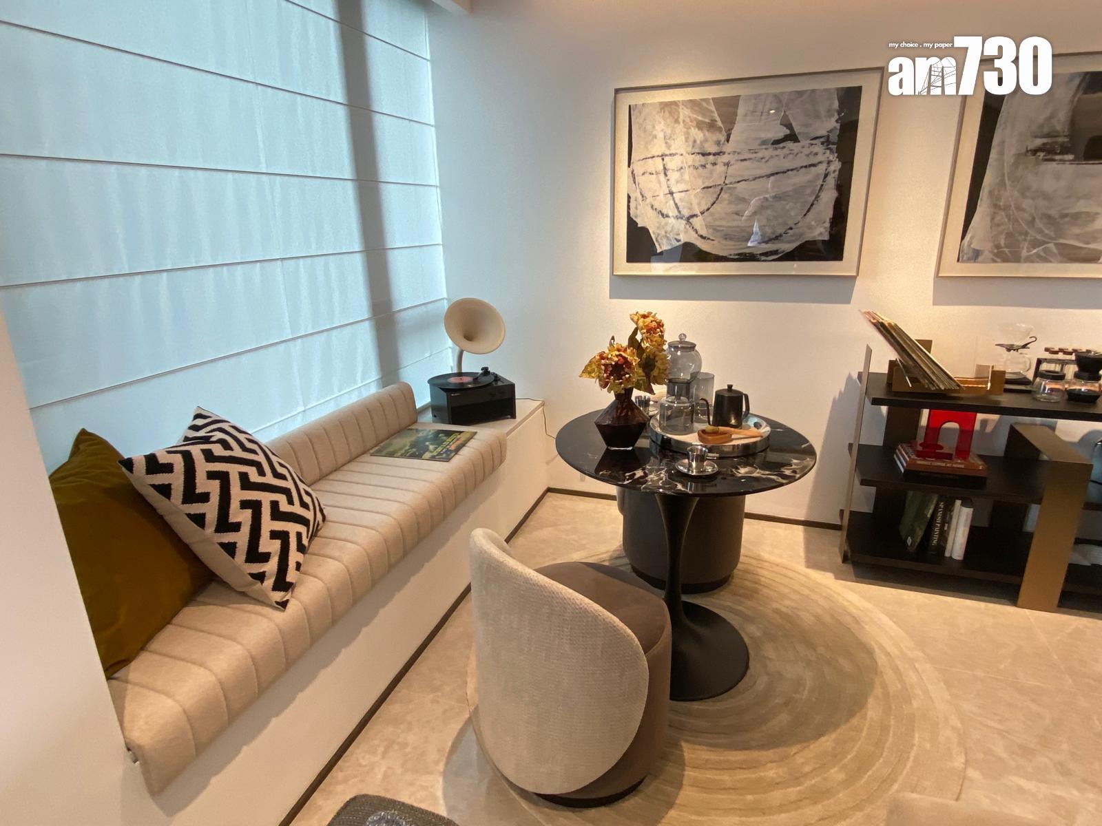 設計師將其中一間睡房融入客廳,進一步提升整體空間感。單位為雙露台設計,客廳與景觀露台相連,廣納戶外自然光線,締造悠然舒適的家居環境。景觀露台亦連接睡房,住戶可享怡人景色。工作露台則可擺放洗衣機及晾曬衣服。