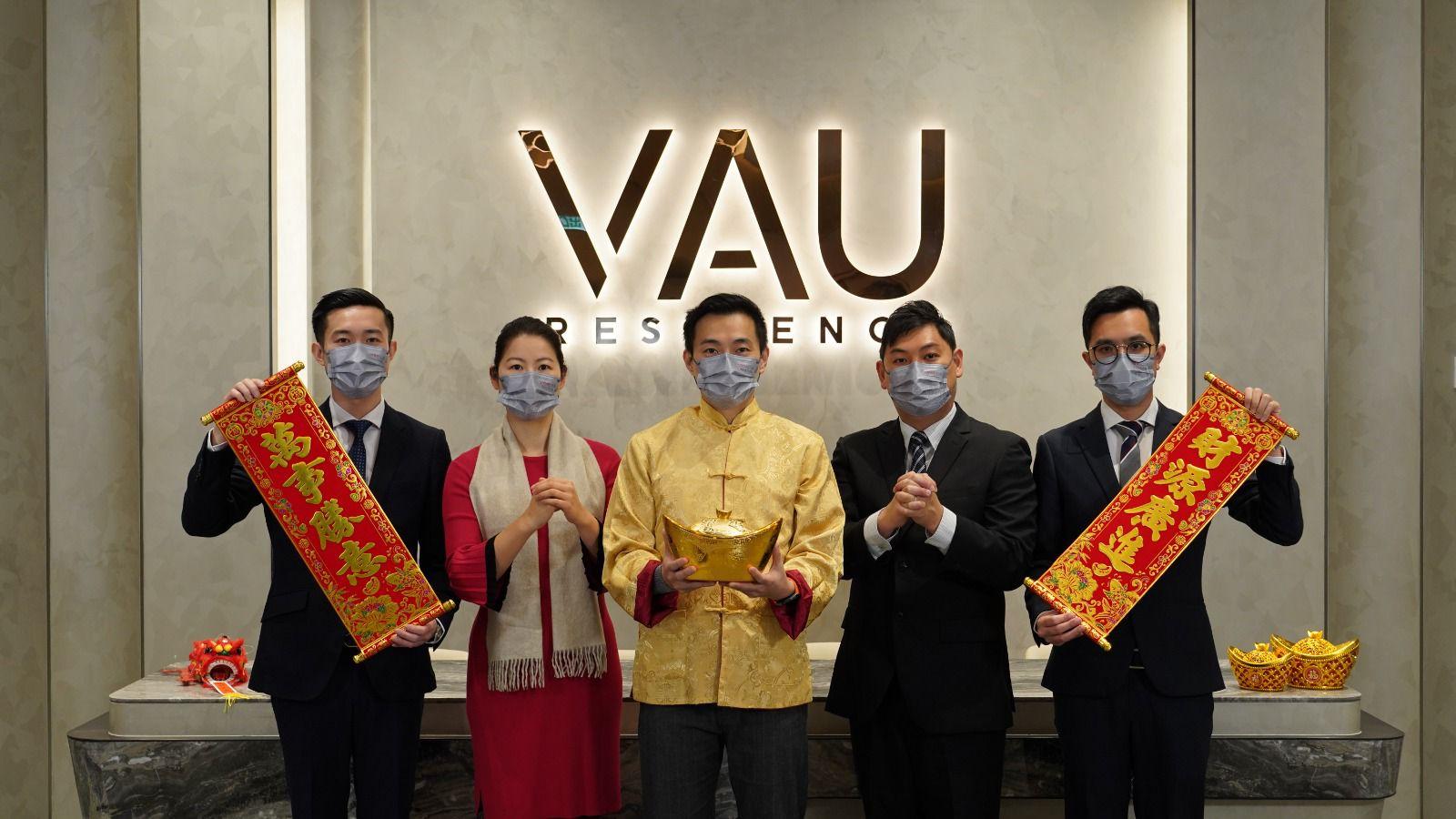 適逢今日為大年初七(人日),萬科香港執行董事兼副總經理周銘禧及萬科香港市場營銷及客戶關係部副總裁劉淑貞,聯同銷售團隊到何文田項目VAU Residence的銷售中心向各準買家拜年。