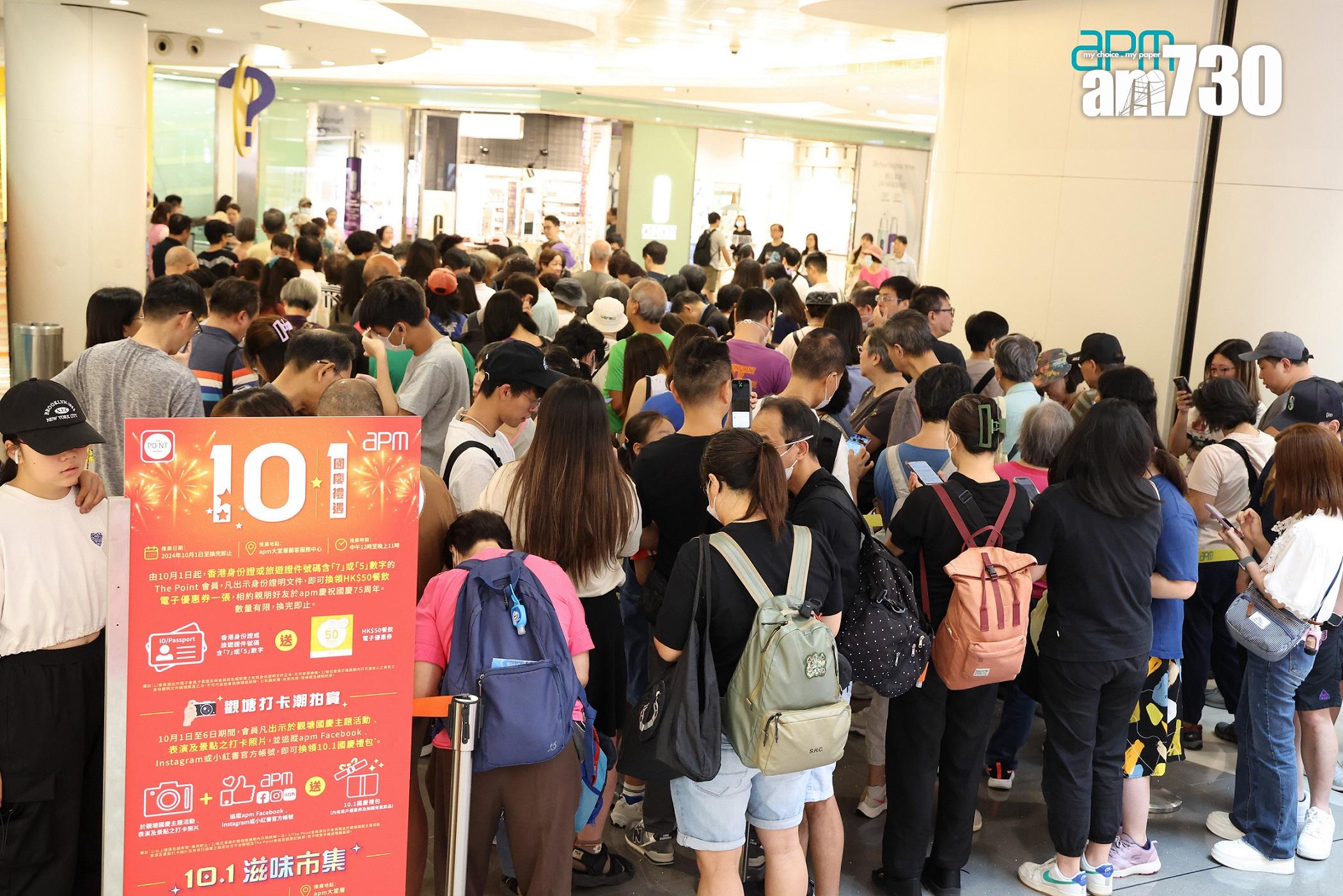 為慶祝國慶75周年及迎接10.1黃金周,新鴻基地產(016)旗下15大商場包括apm、大埔超級城、元朗廣場、上水新都廣場等,斥資1,000萬元在各區全力支持盛事經濟,包括apm設國慶美食市集,在港島區重點商場如wwwtc mall、置富南區廣場及利港商場增添熊貓打卡點,並加推多項優惠,如今日起,在指定商場出示身份證或旅遊證件號碼有「7」、「5」數字,可免費領餐飲券、憑消費換領熊貓主題禮品、夥拍租戶送出國慶禮包等,冀以多重優惠及主題活動,為市民及旅客打造繽紛慶祝之旅。黃金周首日人流及營業額按年增約5%,料未來6日仍有上升空間,估計7天黃金周的人流及營業額按年增5%10%