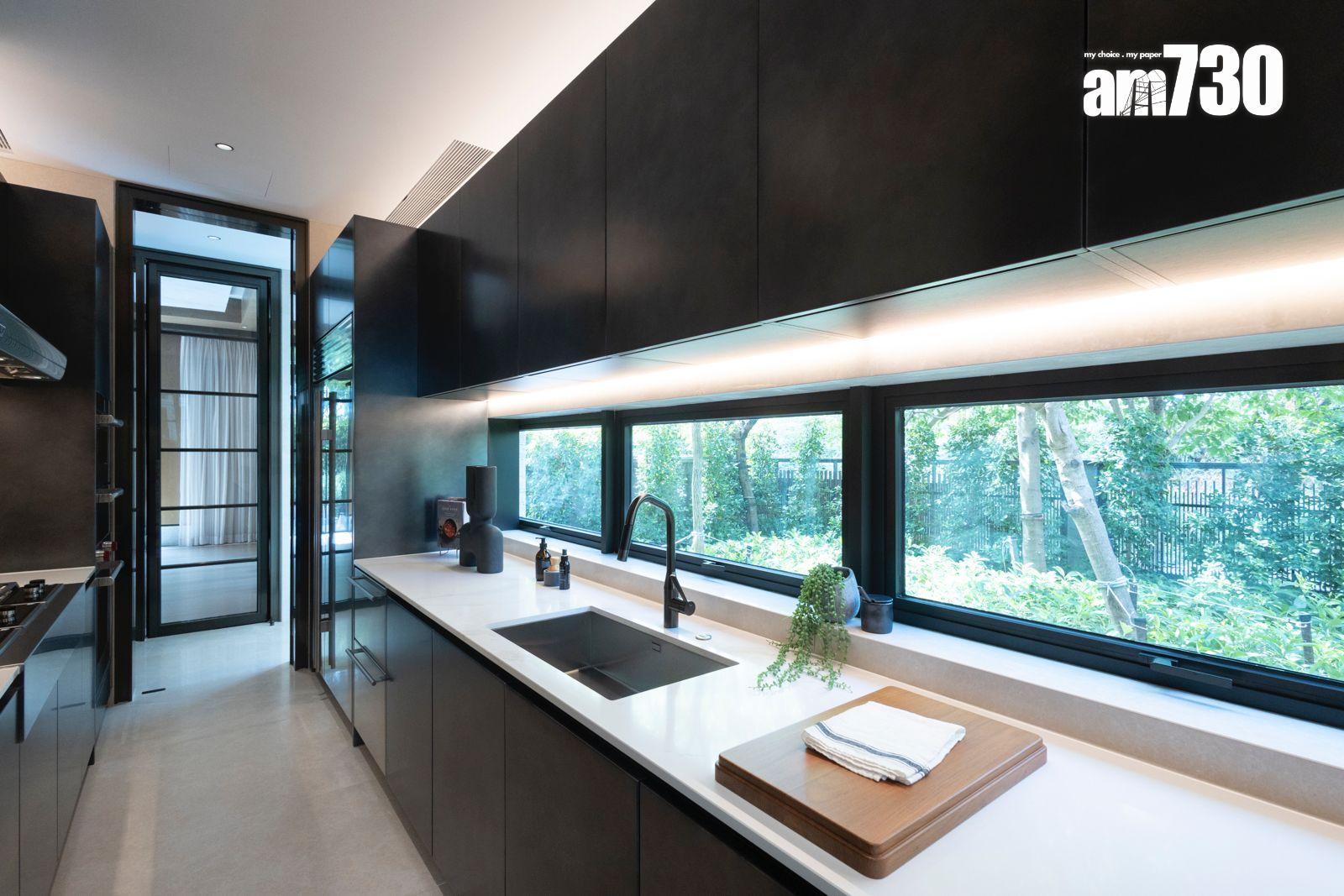 大宅綠蔭、前有觀景水池,私隱寧靜;地下客飯廳長逾13米、空間逾850方呎。室內設計由知名英國建築及設計公司Conran and Partners操刀,雲石牆配 水墨畫、十人實木餐桌與層疊吊燈;客廳附洗手間及附有衣物護理機的衣帽間;長型廚房備超聲波洗菜機、食物垃圾處理器與真空包裝機;家庭偏廳有六人桌、中島座椅與Mini Bar,落地玻璃外望來自美國西雅圖的全球頂尖建 築事務所 Olson Kundig 打造的懸挑屋蓋及格柵,將充沛日光融入建築設計之同時保 護屋主私隱度,展現建築與自然的和諧共融。