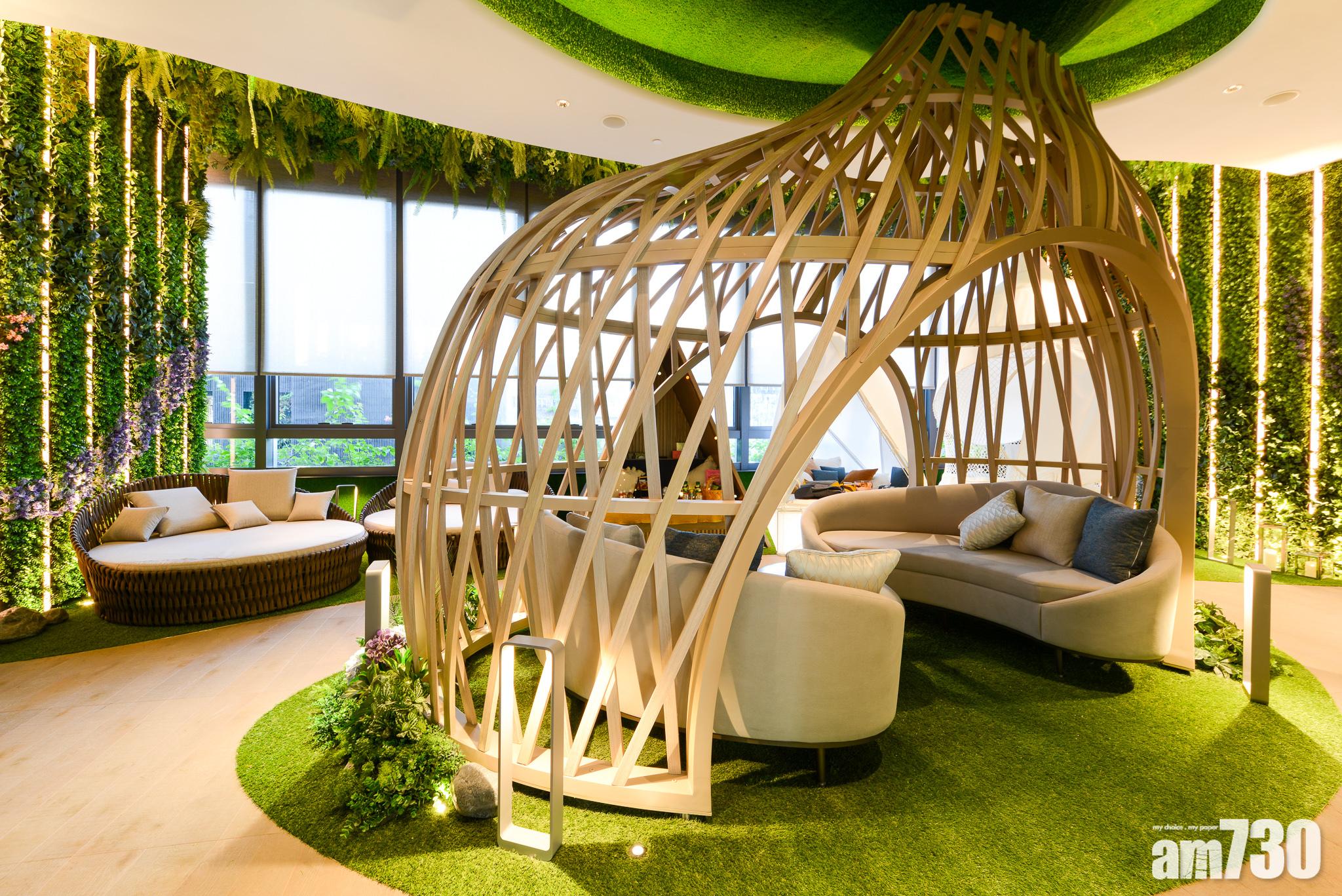 藝里坊.2號今日率先開放主題會所「Club Glamp」予傳媒參觀,韓家輝稱,住客會所Club Glamp以「至潮露營Glamping」為主題,採用綠化設計概念,會所面積3,953方呎,而綠化園林則1,469方呎,合共5,422方呎,將綠意由室外延伸到室內。