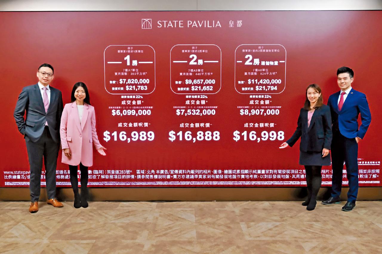 何家欣(左二)形容「皇都」首張價單為「頭炮喜動價」。