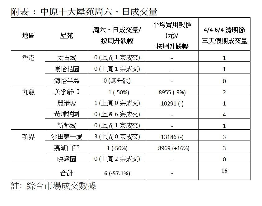十大屋苑|4月首周末成交重回單位數 6屋苑捧蛋 中原:假期市民外遊+一手搶客