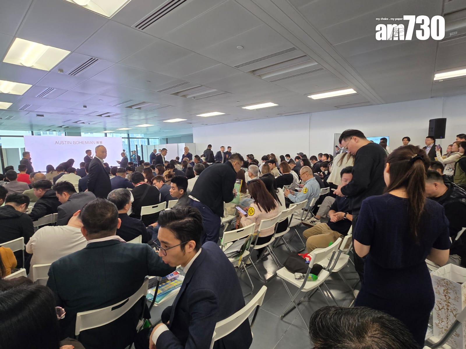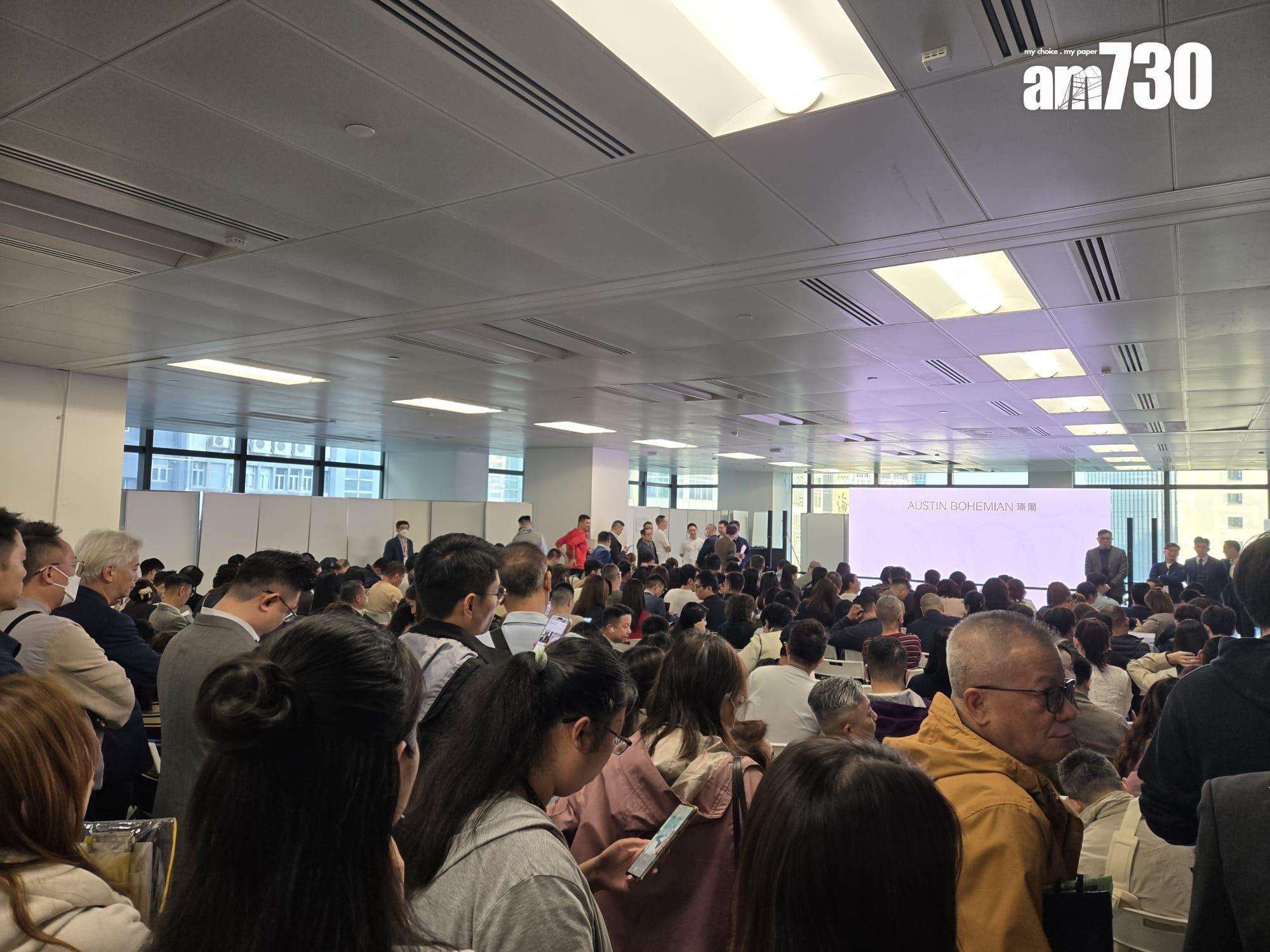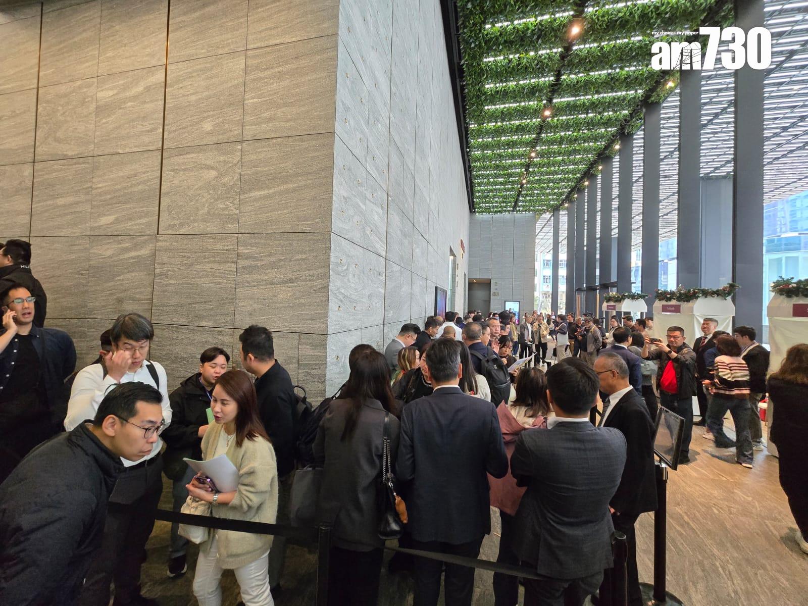 在下午B組時段,亦吸引逾100組買家到場登記,在地下大堂的人龍超過300米,氣氛熱鬧,井然有序,最終在半小時內,預留的12伙亦全數獲買家認購。