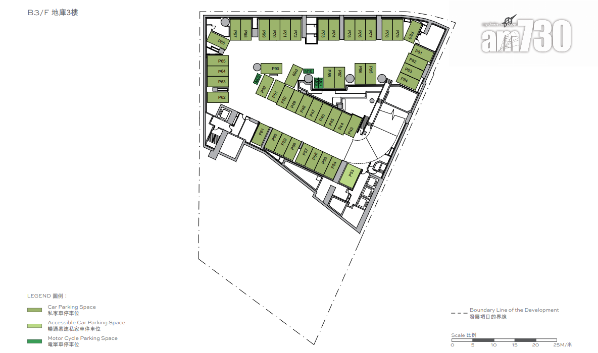 「皇都」停車位位於地庫1樓至3樓,合共提供89個住宅停車位,平均約4戶人爭一個停車位。