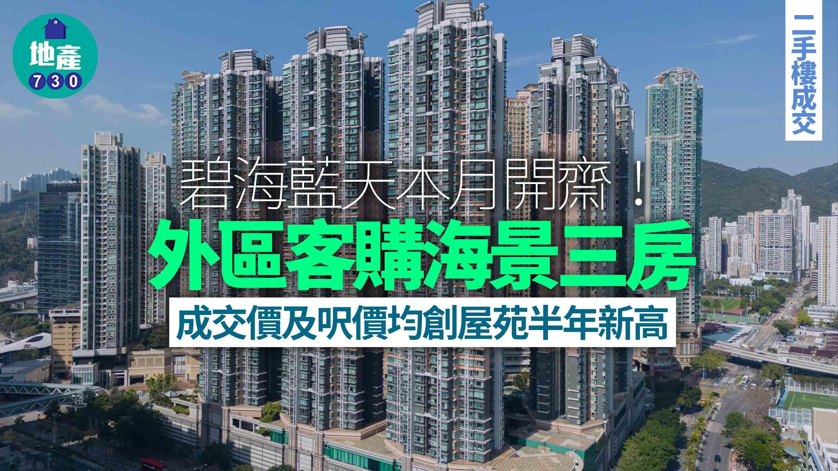 碧海藍天本月開齋!外區客購海景三房 成交價及呎價均創屋苑半年新高|二手樓成交