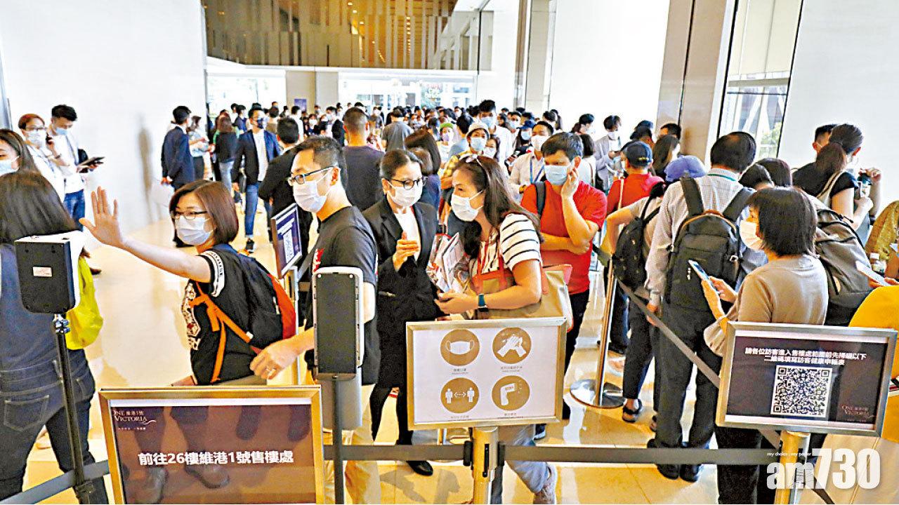 維港1號位於九龍灣的示範單位吸引不少市民排隊等候參觀。 (林俊源攝)