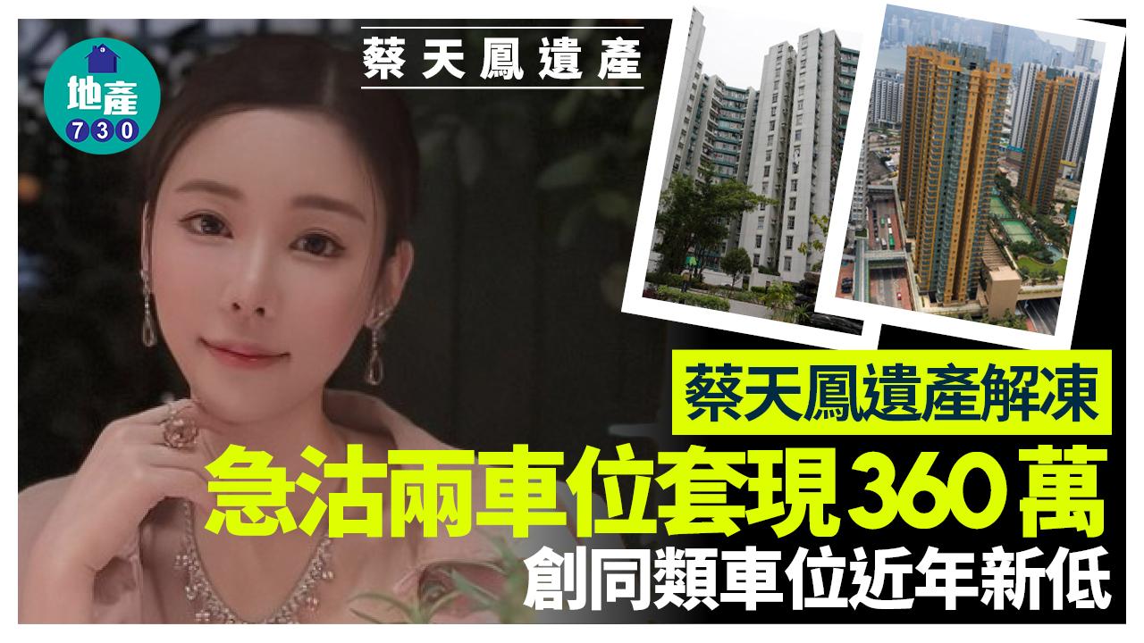 蔡天鳳遺產解凍 急沽兩車位套現360萬 創同類車位近年新低