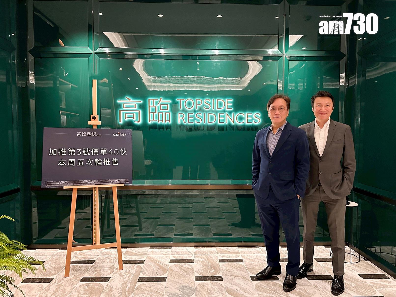 資本策略地產執行董事何樂輝表示,「高臨」首輪銷售令人滿意,迄今合共售出 87伙,佔首輪推出110伙的79%,其中以招標形式售出的特色連平台單位,最高成交呎價達2.9萬元,反映市場對集團品牌及高鐵概念盤充滿信心。