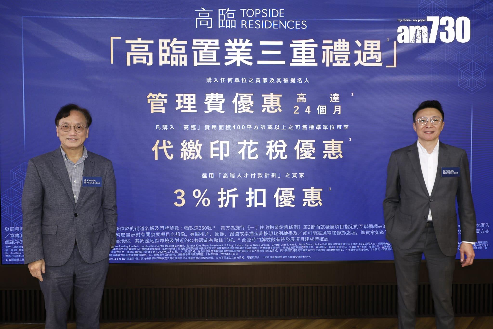 畢子鴻續指,項目新推出「高臨置業三重禮遇」,包括購入單位買家及被提名人可享高達24個月管理費優惠;凡購入實用面積400方呎或以上標準單位可享代繳印花稅優惠,優惠上限為樓價4.25%;選用「高端人才付款計劃」入市買家享3%折扣優惠。