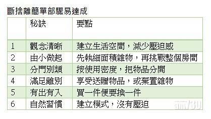 既然住宅單位面積細小,盡用空間確實需要絞盡腦汁,但從另一個角度看,如果從斷捨離開始,能否開拓另一片空間?近年興起的斷捨離,其實除了拋棄不需要的東西外,相信還涉及觀念、行為和習慣3方面,簡單步驟易達成。