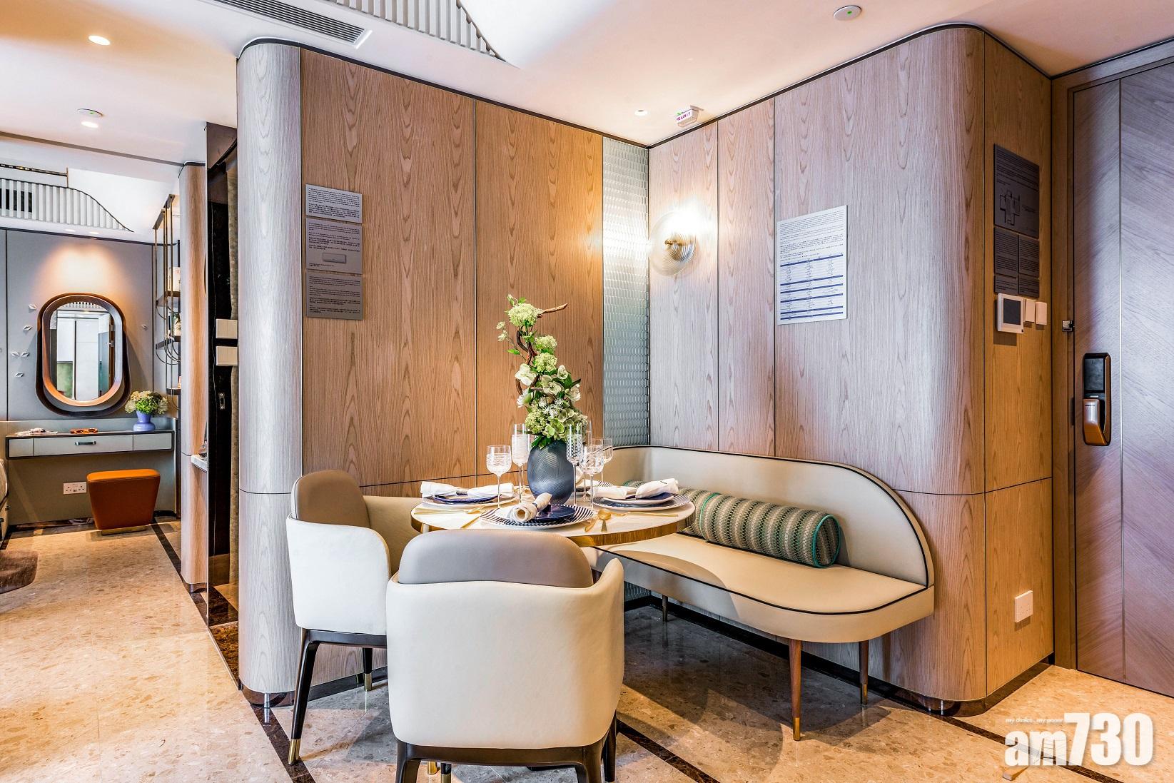 2B座28樓B室飯廳以長型沙發椅打造,有如豪華遊艇船艙內的感覺。