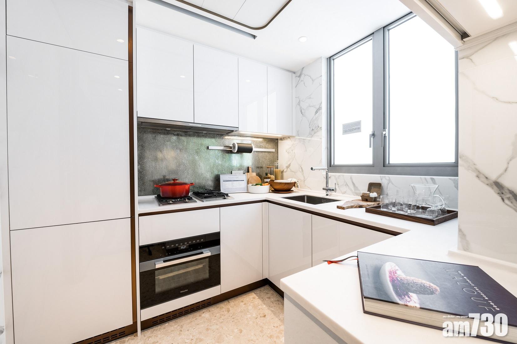 發展商預備兩個示範單位,其中一個為2B座28樓C室交樓標準,實用面積347方呎,一房間隔。單位不設工作平台,大廳以長形開則,方正實用,配上露台及玻璃趟門,引入室外自然光線。廚房採開放式設計,配備抽油煙機外,更特設風喉式抽氣扇加強通風。部分單位會配置日本三菱電機分體式冷氣、Miele煮食爐及廚房用品、Siemens雪櫃及洗衣機、Panasonic浴室寶等。
