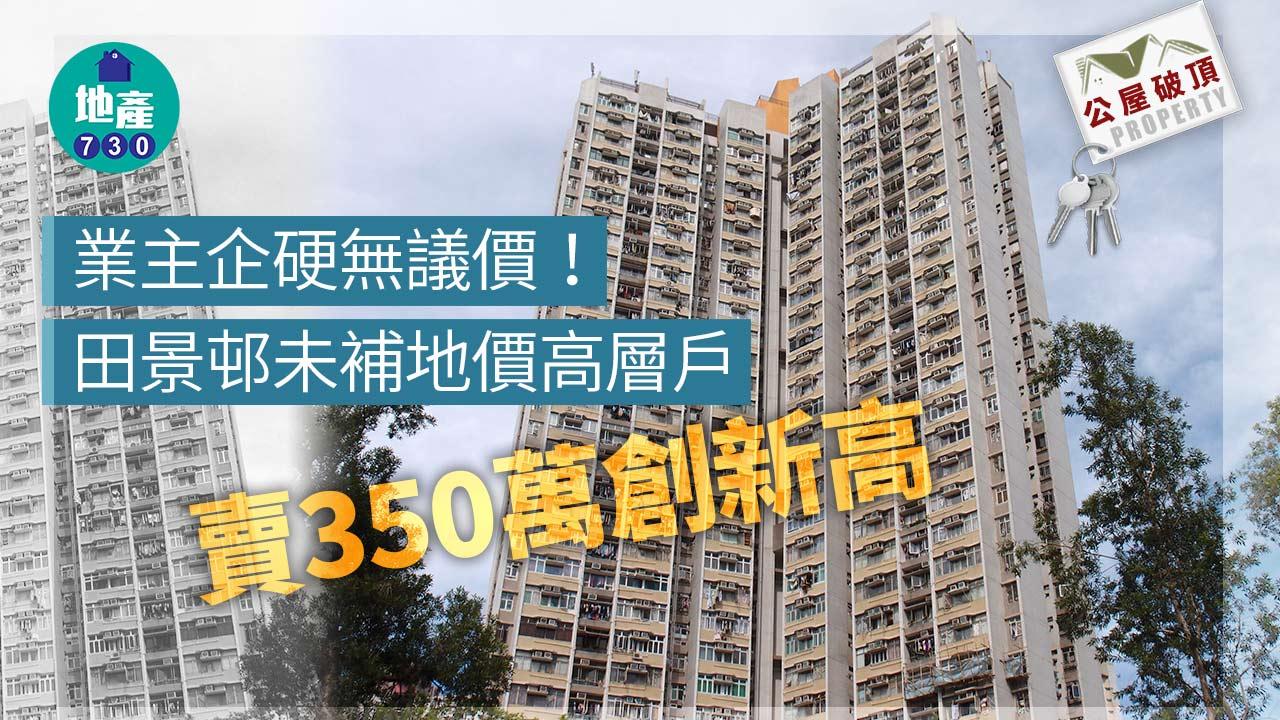 祥益地產高級分行經理黃文樂表示,屯門公屋田景邨田翠樓11座高層15室,實用面積約566方呎,三房兩廳間隔,以未補地價350萬元沽出,創該屋邨未補地價市場新高,呎價約6,184元。