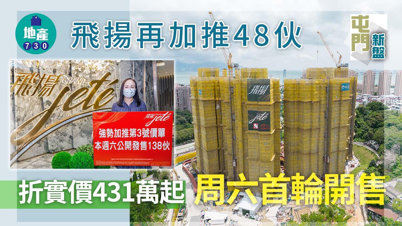 由長江實業集團(1113)及新鴻基地產(016)合作發展的屯門青山公路飛揚第1期今日(21日)加推第3號價單,涉48伙,以120天即供優惠計,一房及兩房最高折扣為15%,三房最高折扣則為17%,折實售價由431.5萬元起,折實平均呎價16,129元,較2號價單的15,418元,高4.6%;與上周五(17日)首張價單的15,050元相比,高7.2%;同時落實於本周六(25日)首輪發售138伙。