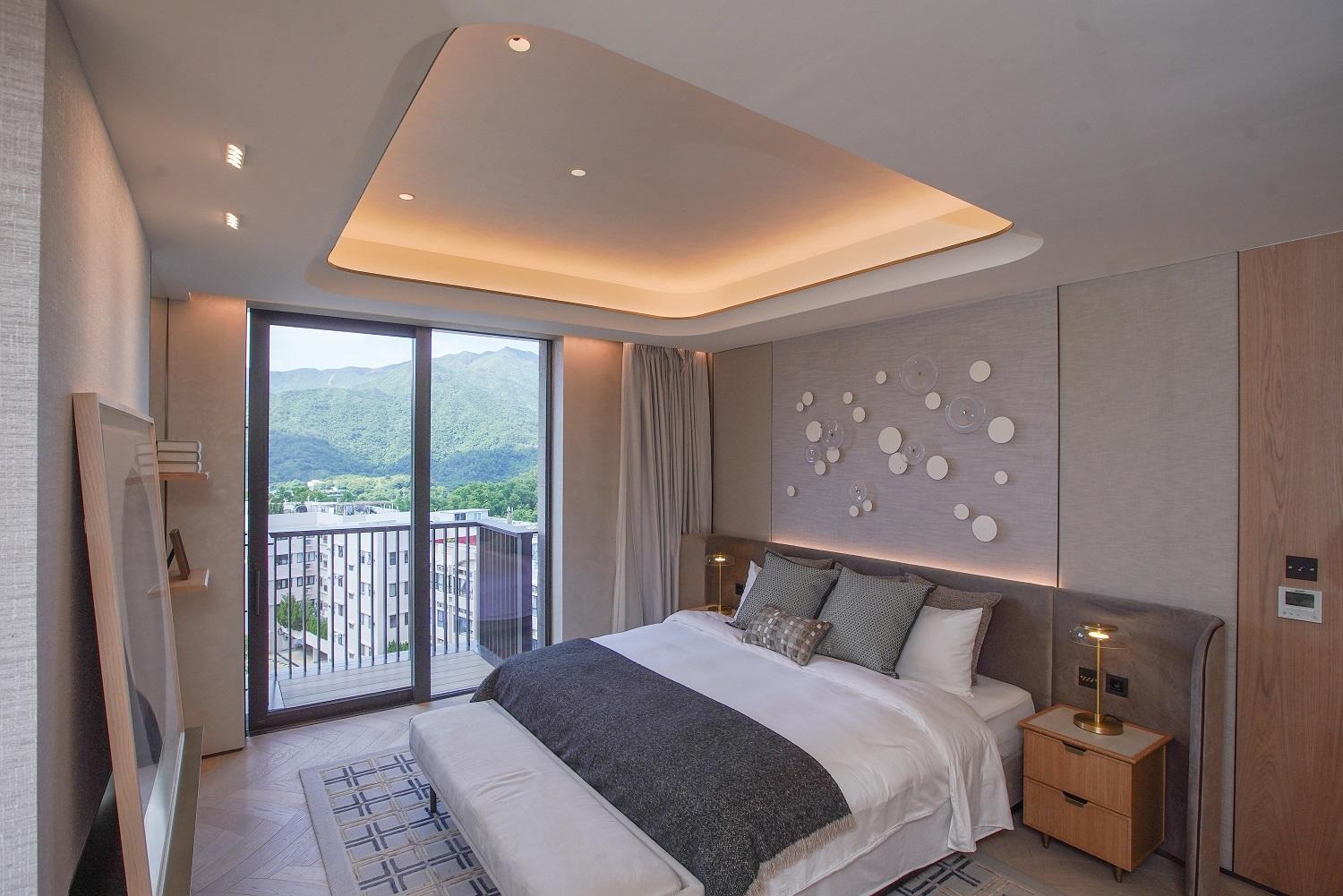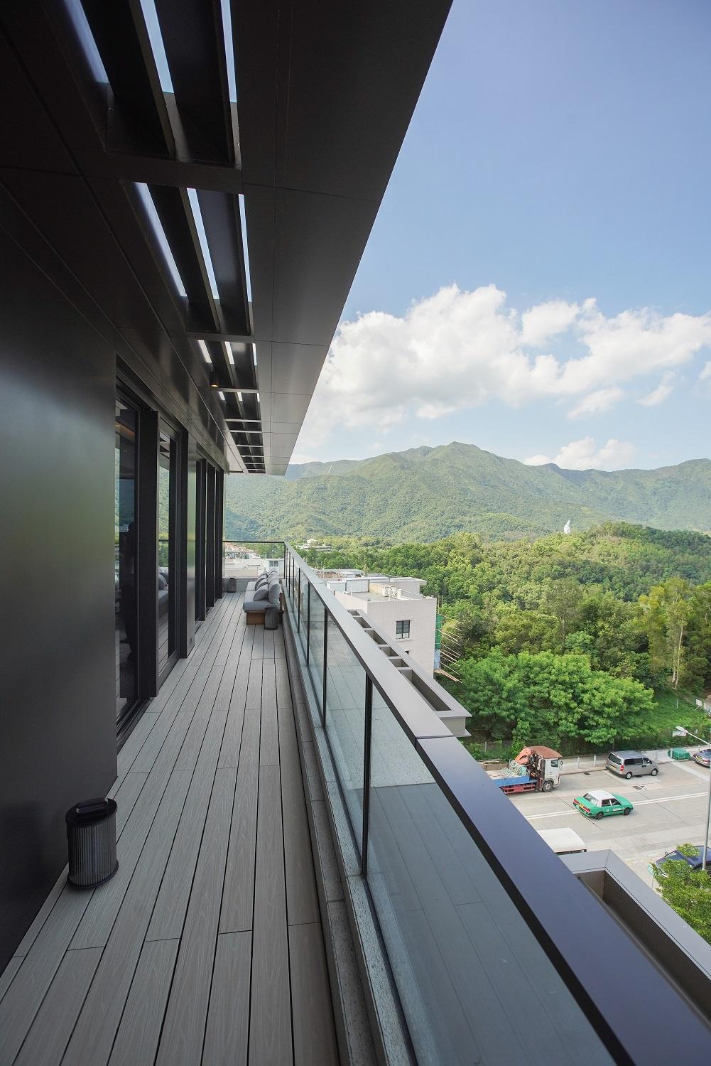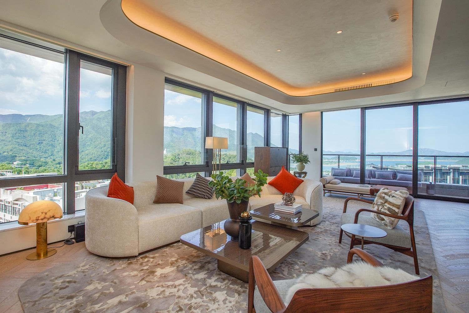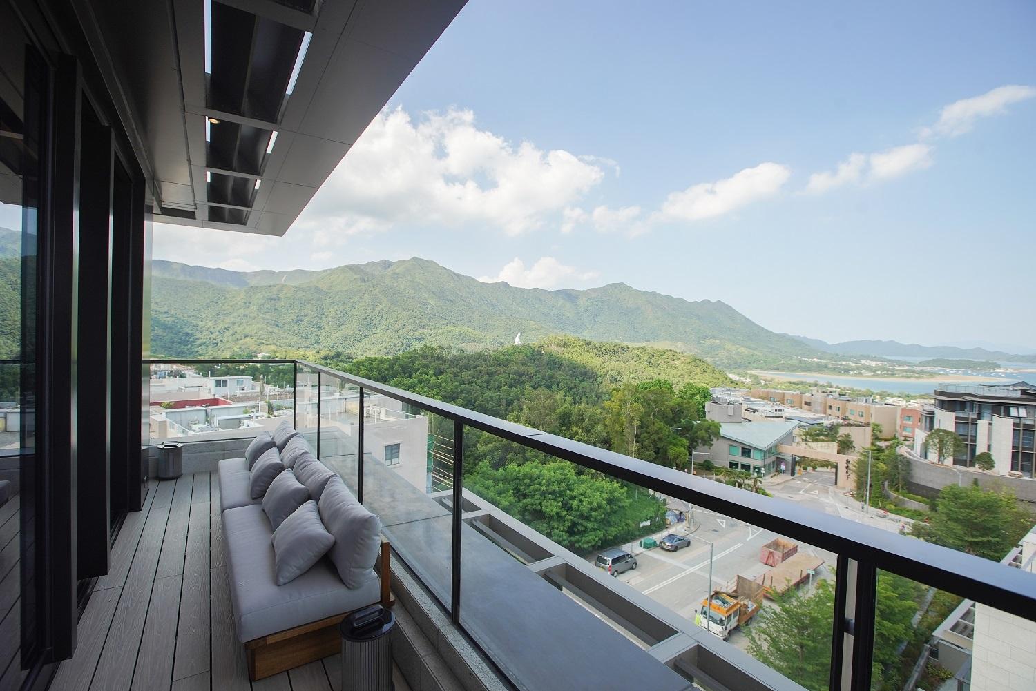 項目每戶享有專屬升降機大堂,私隱度高。第6座5樓B室坐向正北,擁落地玻璃窗連接特大平台,採光度特高,引入八仙嶺翠綠山景景致,亦可眺望船灣淡水湖與吐露港雙重海景。平台配有沙發及高椅,猶如一個私人空中酒吧,同時亦坐擁寬闊景觀。