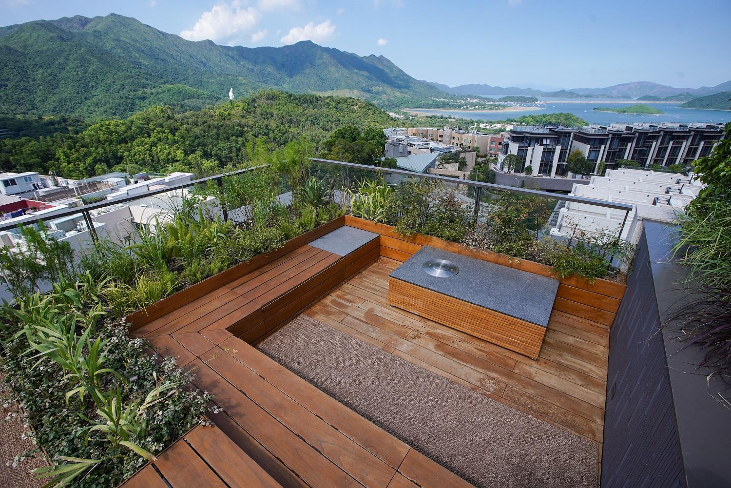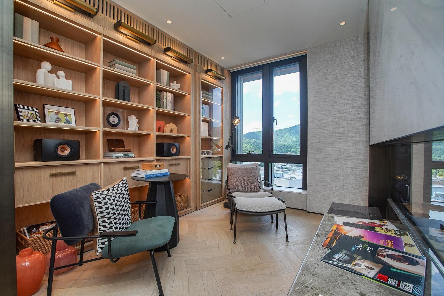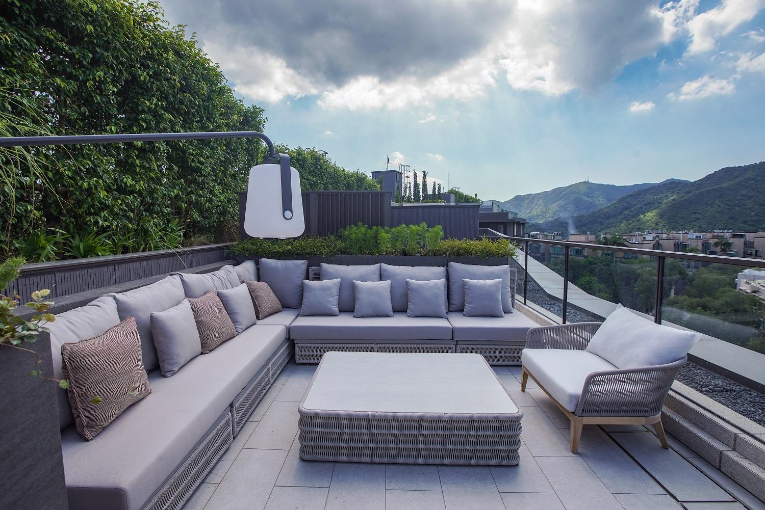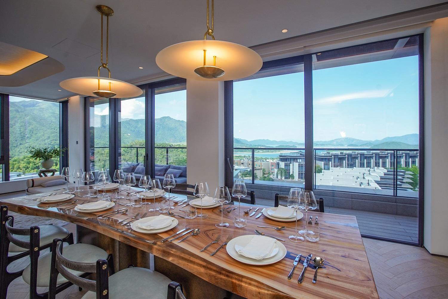 項目每戶享有專屬升降機大堂,私隱度高。第6座5樓B室坐向正北,擁落地玻璃窗連接特大平台,採光度特高,引入八仙嶺翠綠山景景致,亦可眺望船灣淡水湖與吐露港雙重海景。平台配有沙發及高椅,猶如一個私人空中酒吧,同時亦坐擁寬闊景觀。