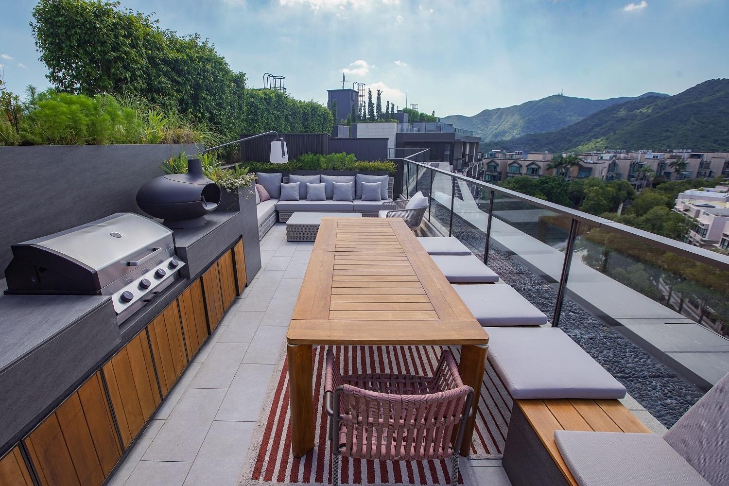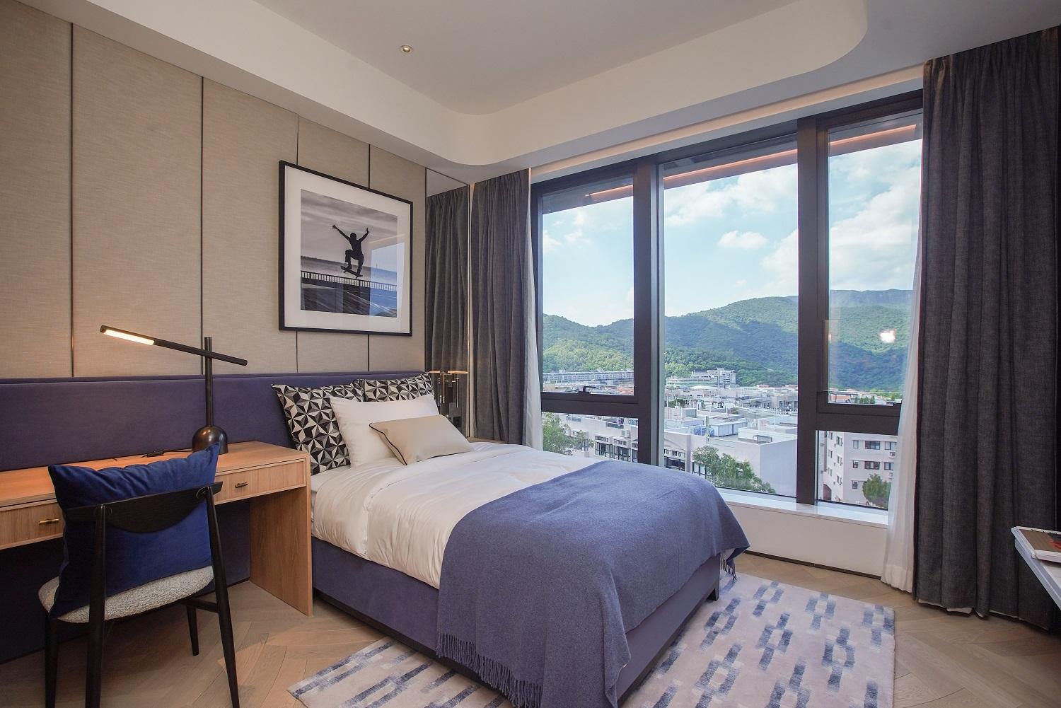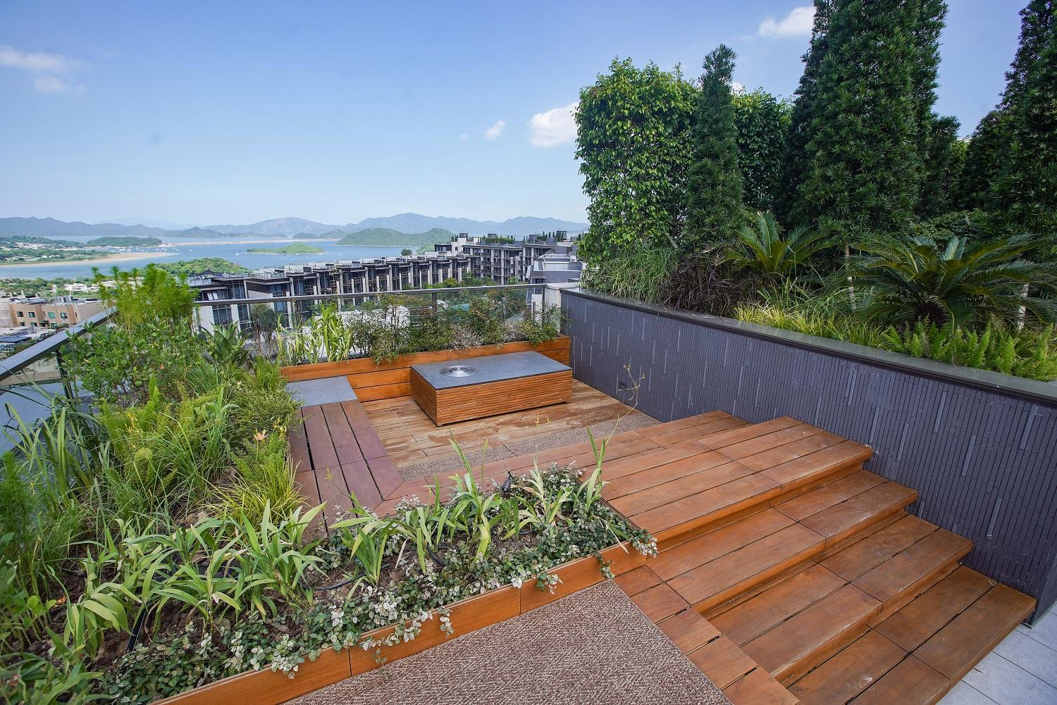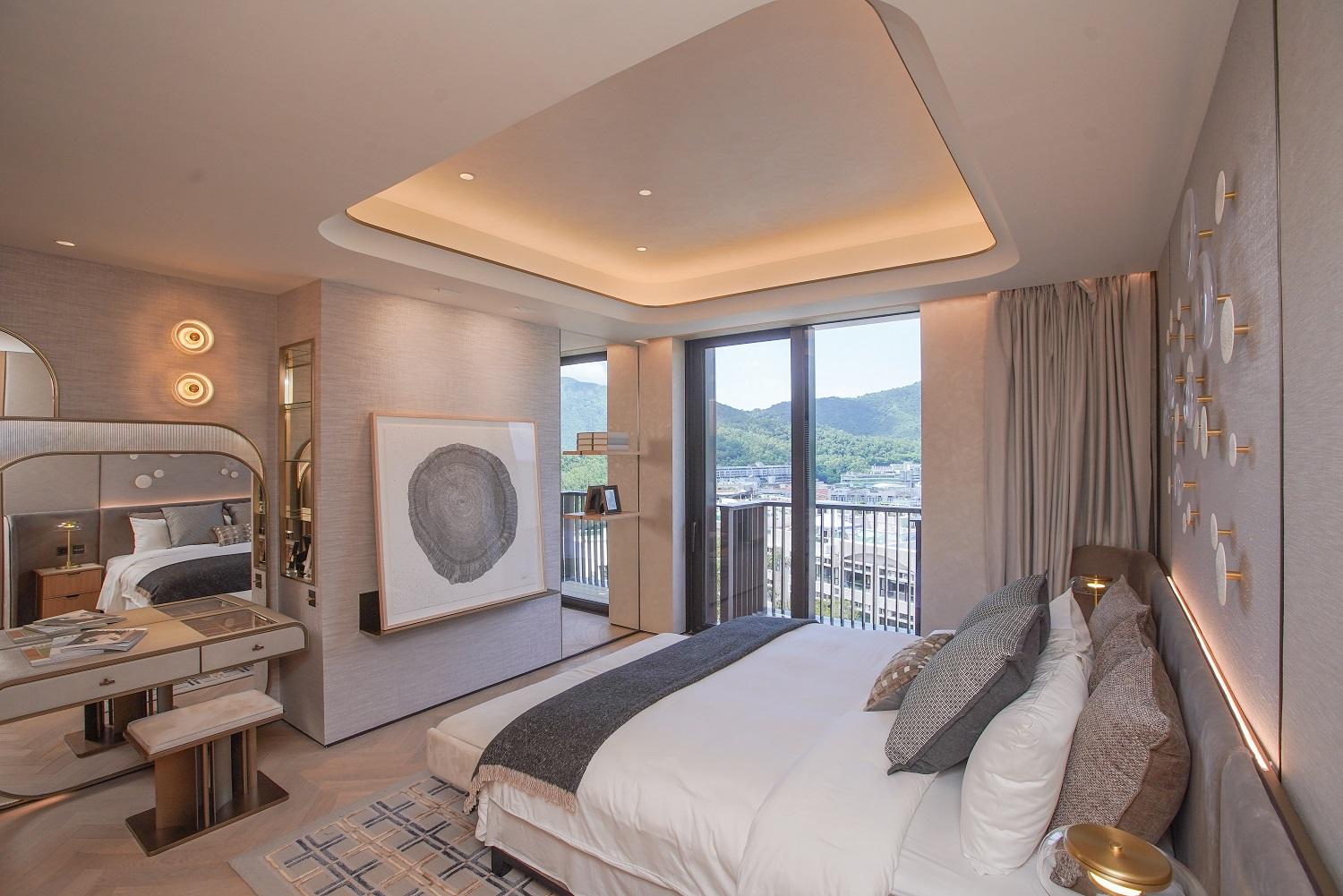 項目每戶享有專屬升降機大堂,私隱度高。第6座5樓B室坐向正北,擁落地玻璃窗連接特大平台,採光度特高,引入八仙嶺翠綠山景景致,亦可眺望船灣淡水湖與吐露港雙重海景。平台配有沙發及高椅,猶如一個私人空中酒吧,同時亦坐擁寬闊景觀。
