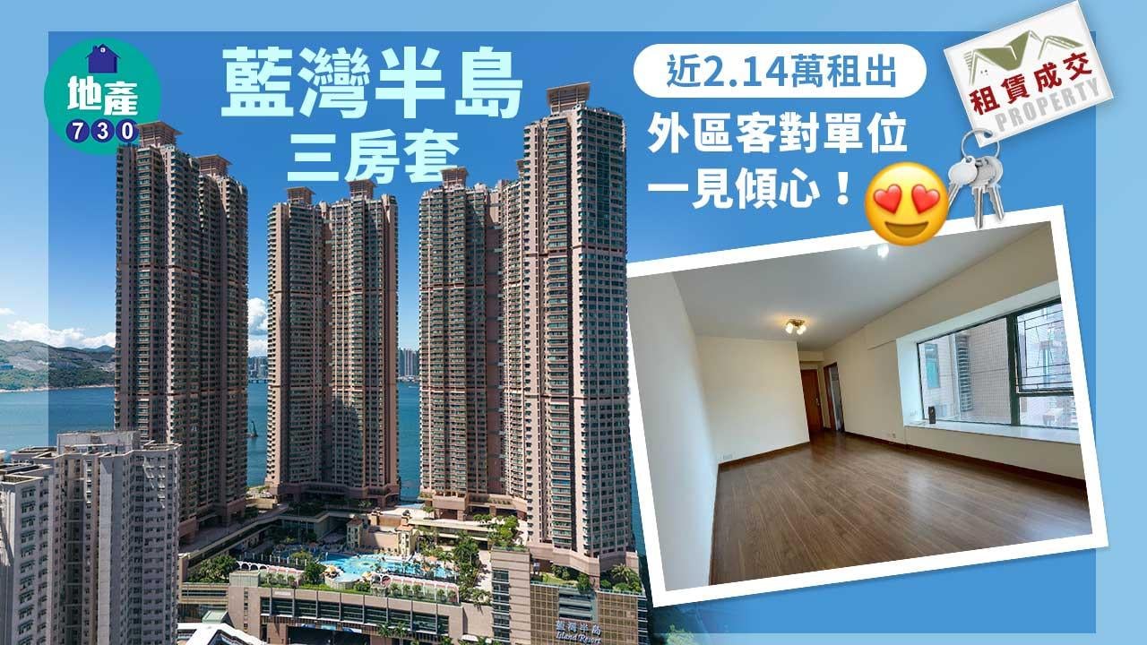 二手樓租賃成交|藍灣半島三房套近2.14萬租出 外區客對單位一見傾心!