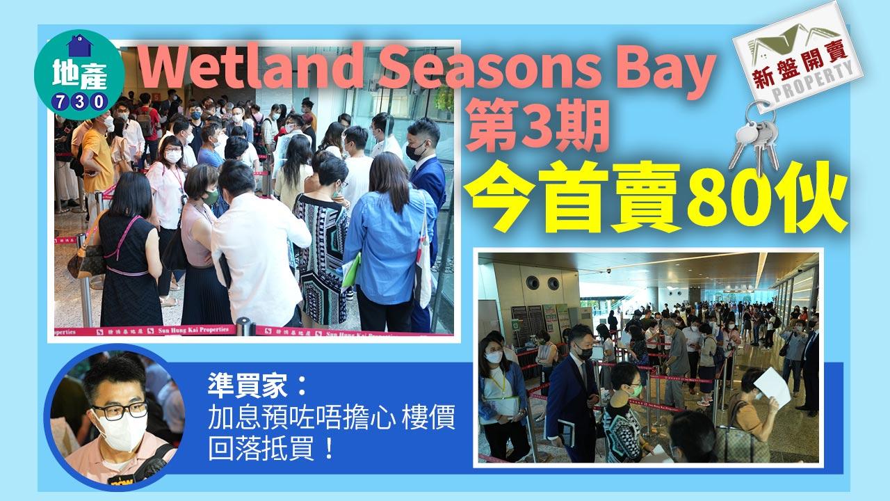 Wetland Seasons Bay第3期首輪截收1,870票,當中包括94票為代理入票,超額認購逾22倍。該80伙戶型涵蓋一房至三房,扣除最高13.5%折扣優惠後,折實售價由496.8萬至884.5萬元,折實呎價介乎13,008元至17,081元。最低售價為6A座2樓B7室,實用面積356方呎,一房間隔,折實售價496.8萬元,折實呎價13,955元。
