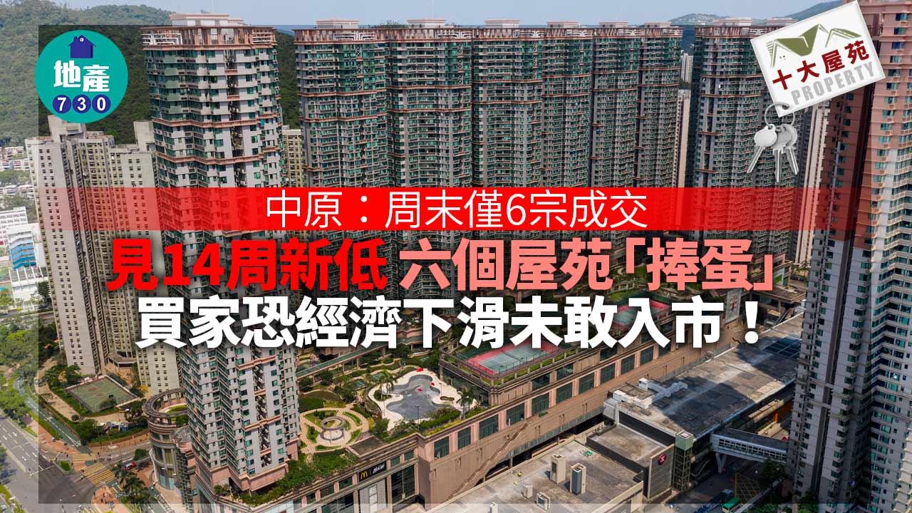十大屋苑|中原:周末僅6宗成交 見14周新低 買家恐經濟下滑未敢入市