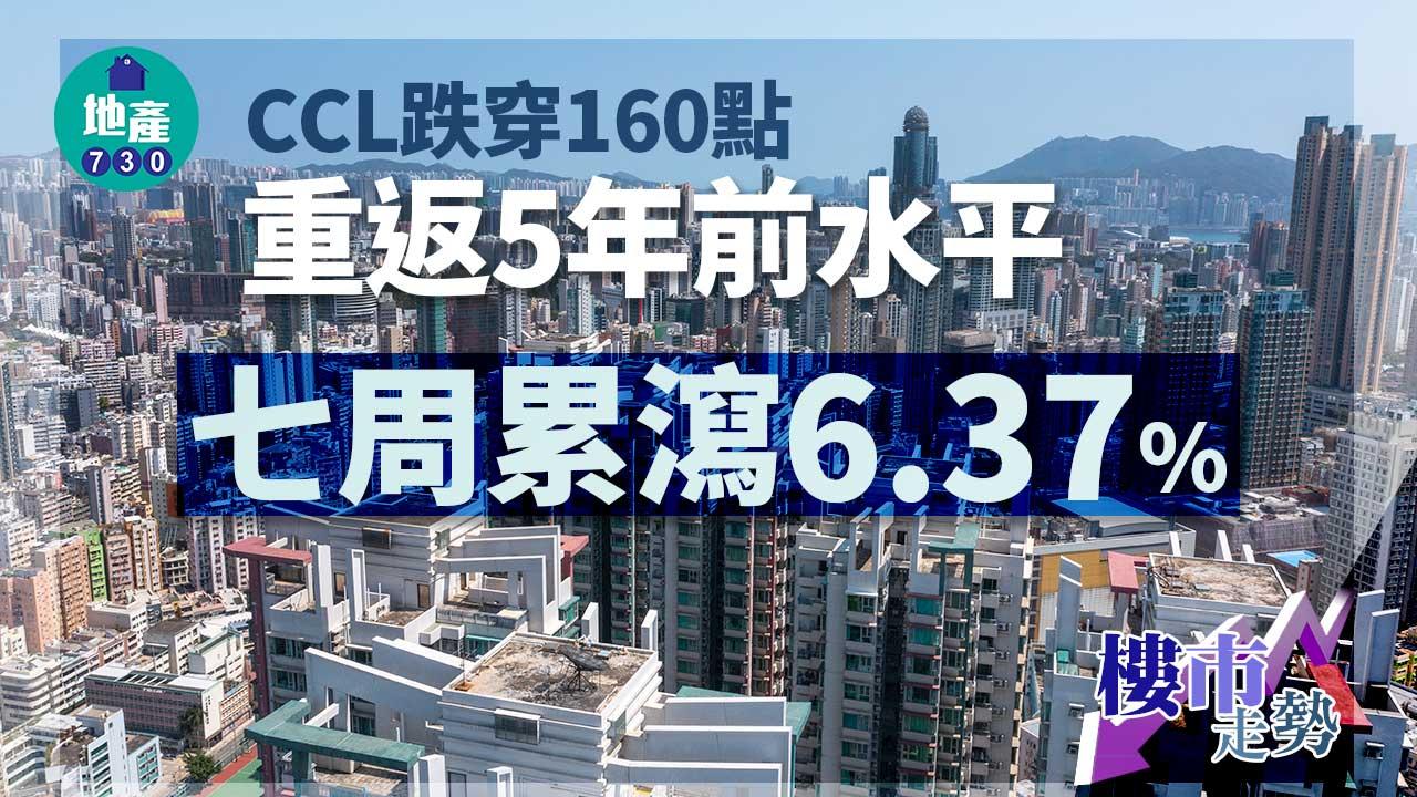 樓價指數|CCL跌穿160點 重返5年前水平 七周累瀉6.37%