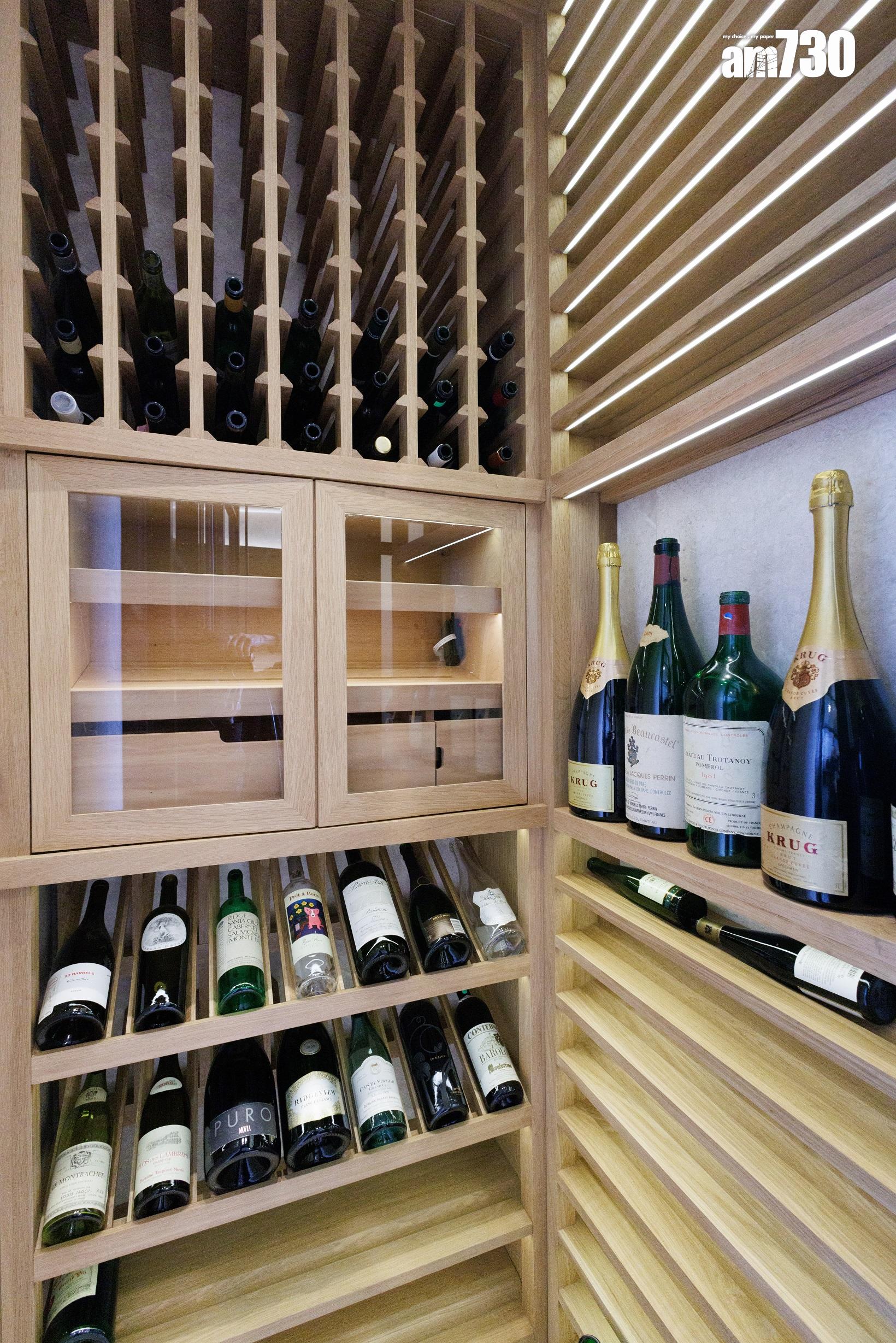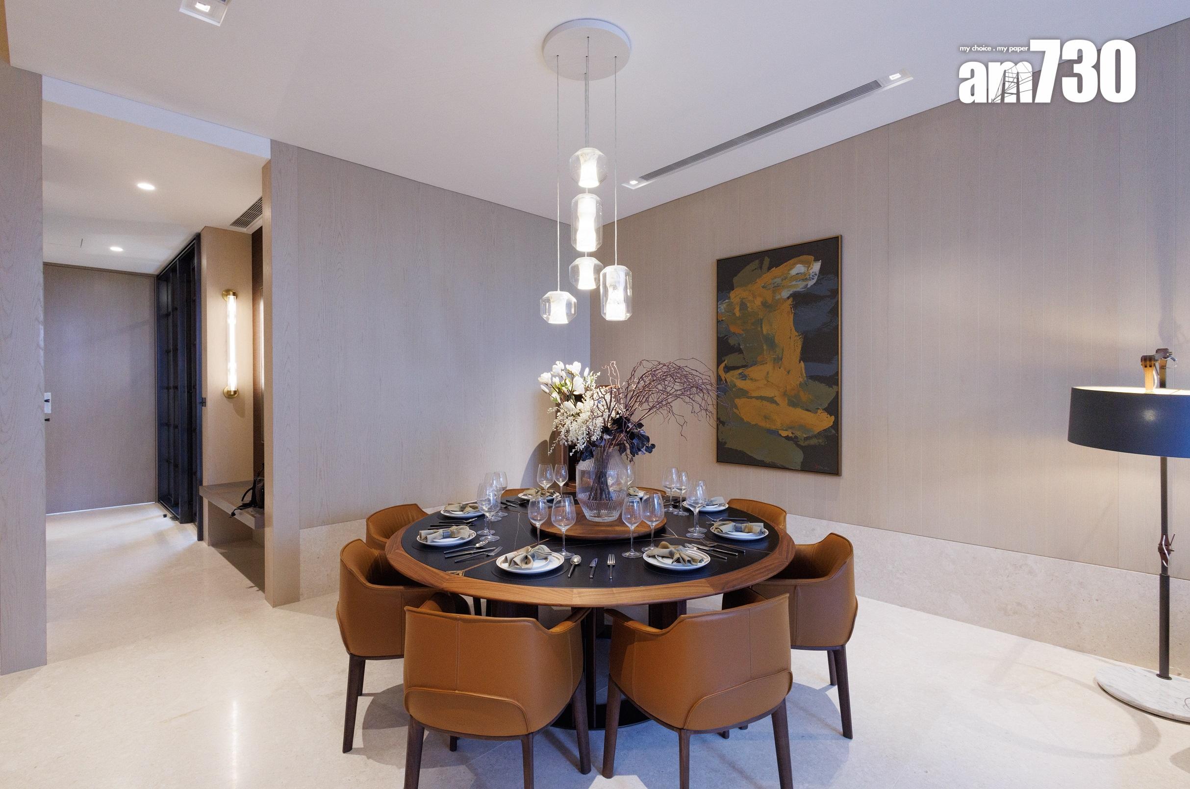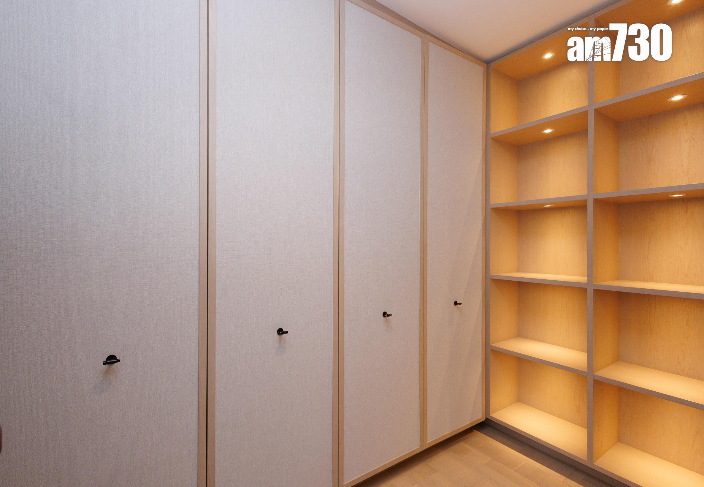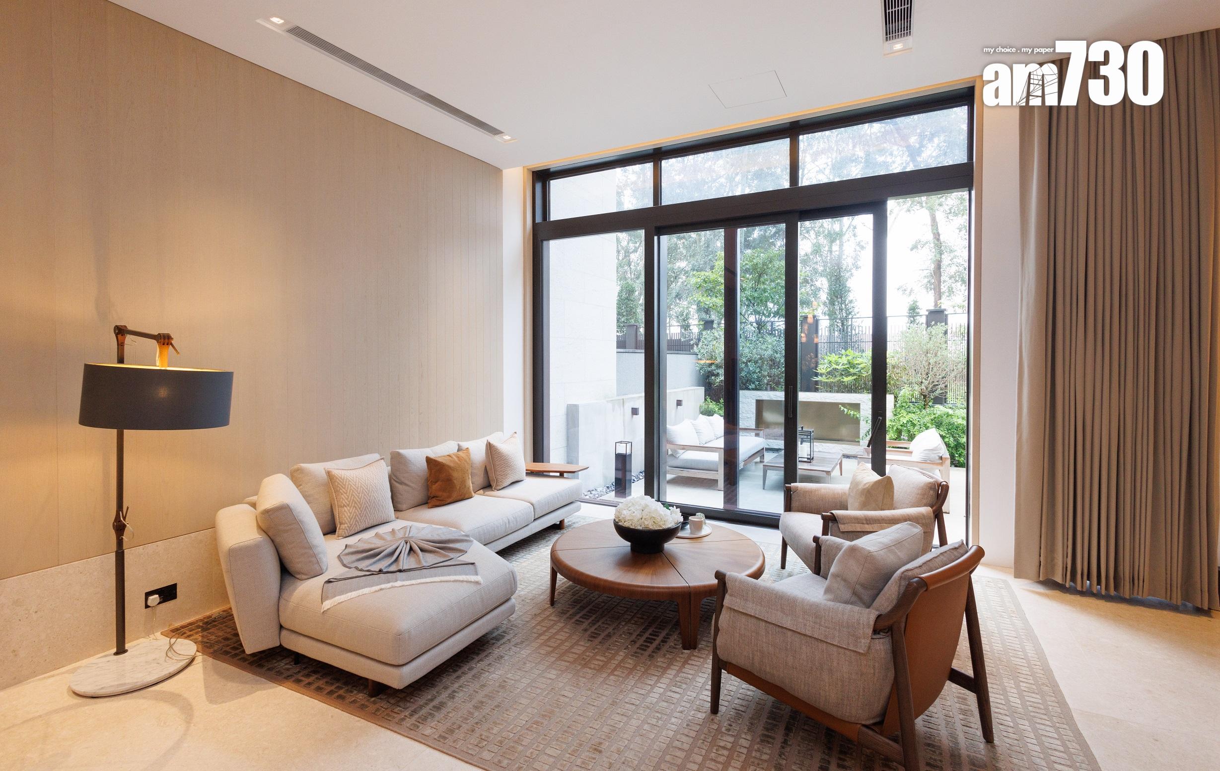 除了客飯廳和多個活動空間,設計師善用二樓主人睡房逾530方呎空間,包括寢室約300方呎、衣帽間近80方呎,以及浴室近150方呎,並將其中一間睡房設計為書房,打造成主人專屬層。主人房擺放大型雙人床後,仍可三邊落床及擺放床尾櫈。主人房設銀幕式趟窗,有助加強空氣流通;在窗前擺放兩張實木單人沙發及一張茶几,供住戶飽覽景致。睡房另一端接連浴室,配備雙洗手盤,加上刻意挑選的燈光效果,營造出如六星級酒店之典雅高貴。