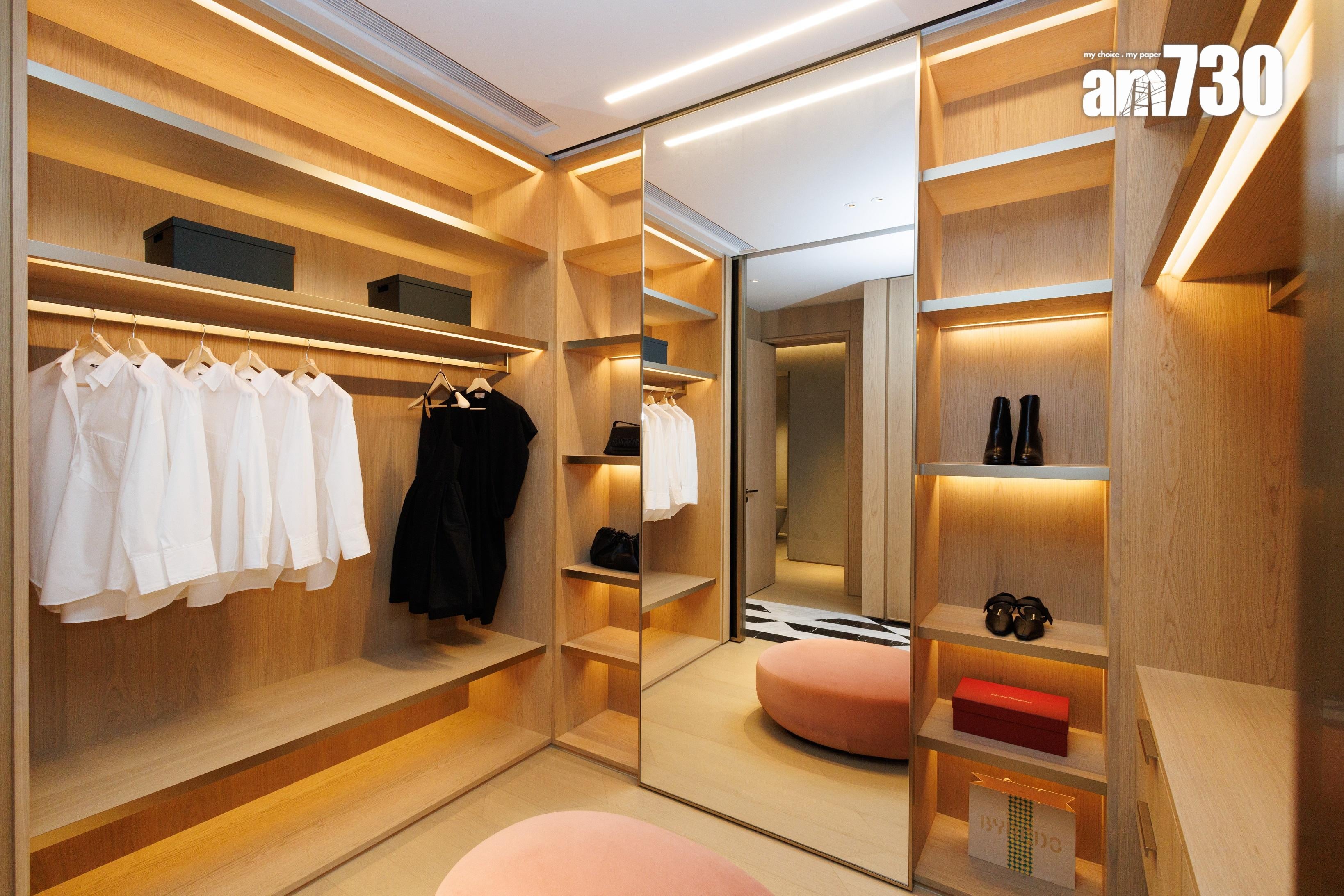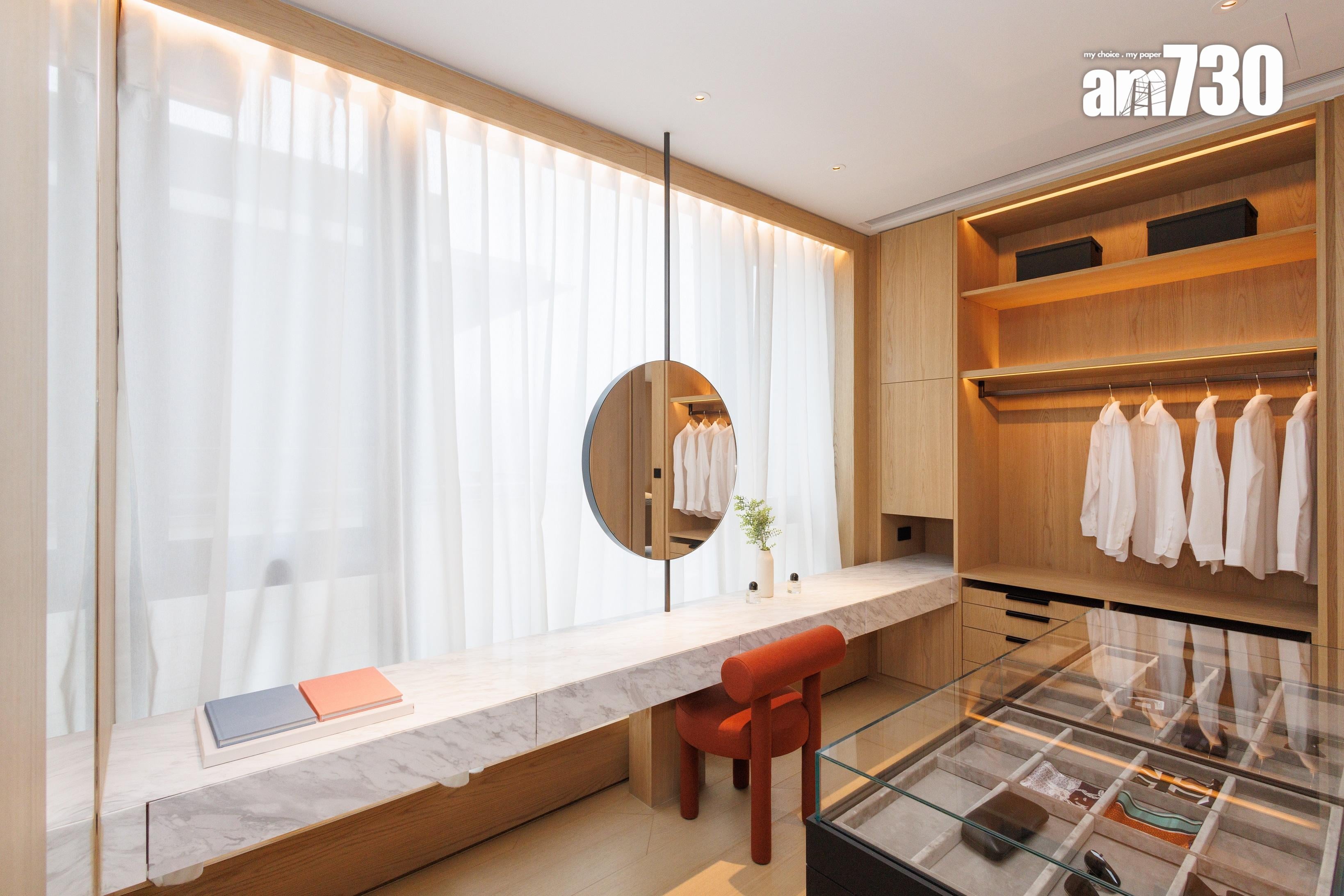設計師特別打造二樓為主人層,打造全層面積超過1,400方呎的主人套房連衣帽及化妝間,貫徹以簡約北歐風格設計。睡床背牆以黑色為主,配以宮廷絨面波浪裝飾及兩盞拉絲黃銅金屬燈,主人戶一組落地玻璃窗連接著80方呎的平台,窗外是優美的船灣淡水湖景致。主人房更設休閒區,位置放置梳化方便屋主與家人在睡前輕鬆談天。主人層擁約500方呎的特大衣帽連工作室,衣帽間放置了多排衣櫃及多組配飾展示櫃,供戶主展示珍稀藏品和時裝配飾,方便戶主揀選配飾襯衫,盡顯大戶之家的品位和格調。