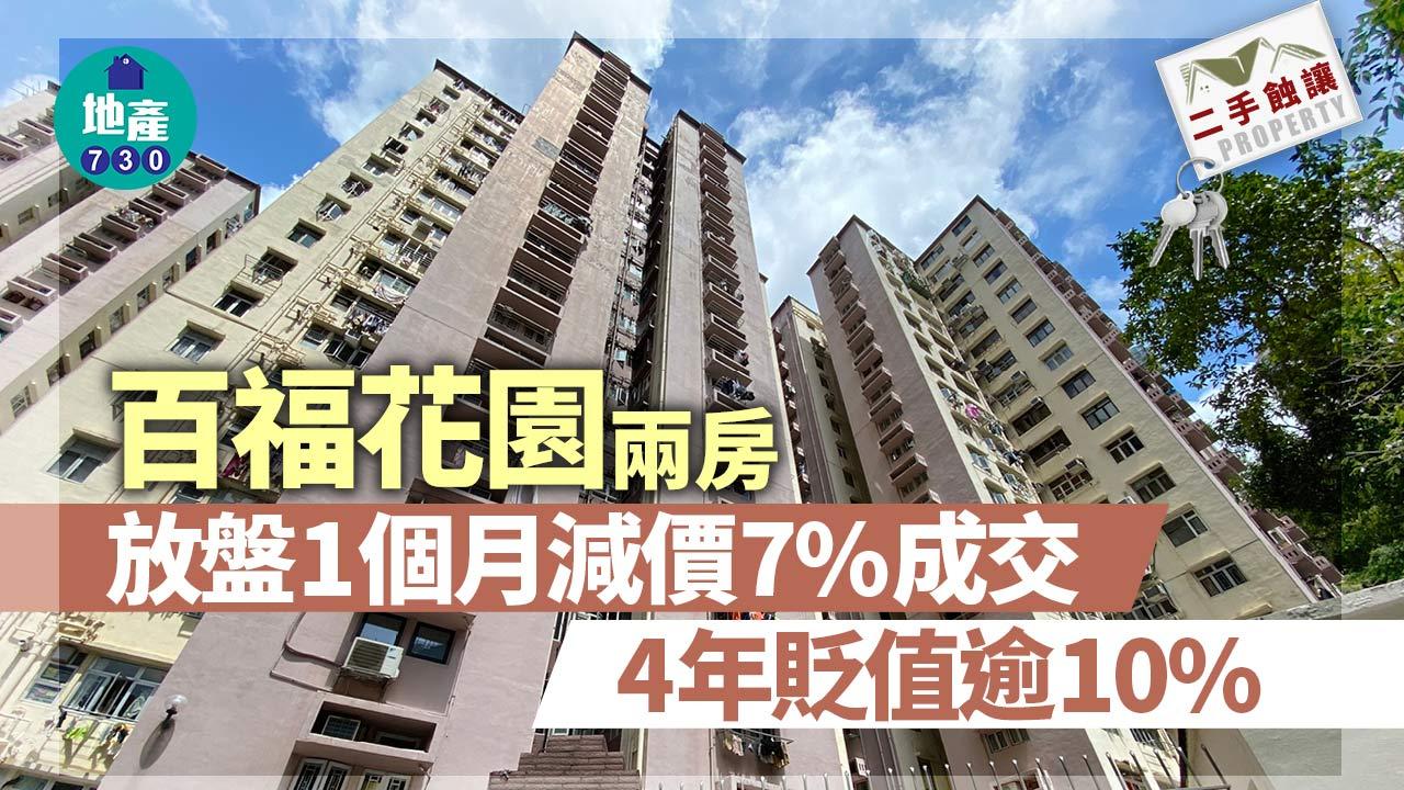 二手蝕讓|百福花園兩房放盤1個月減價7%成交 4年貶值逾10%