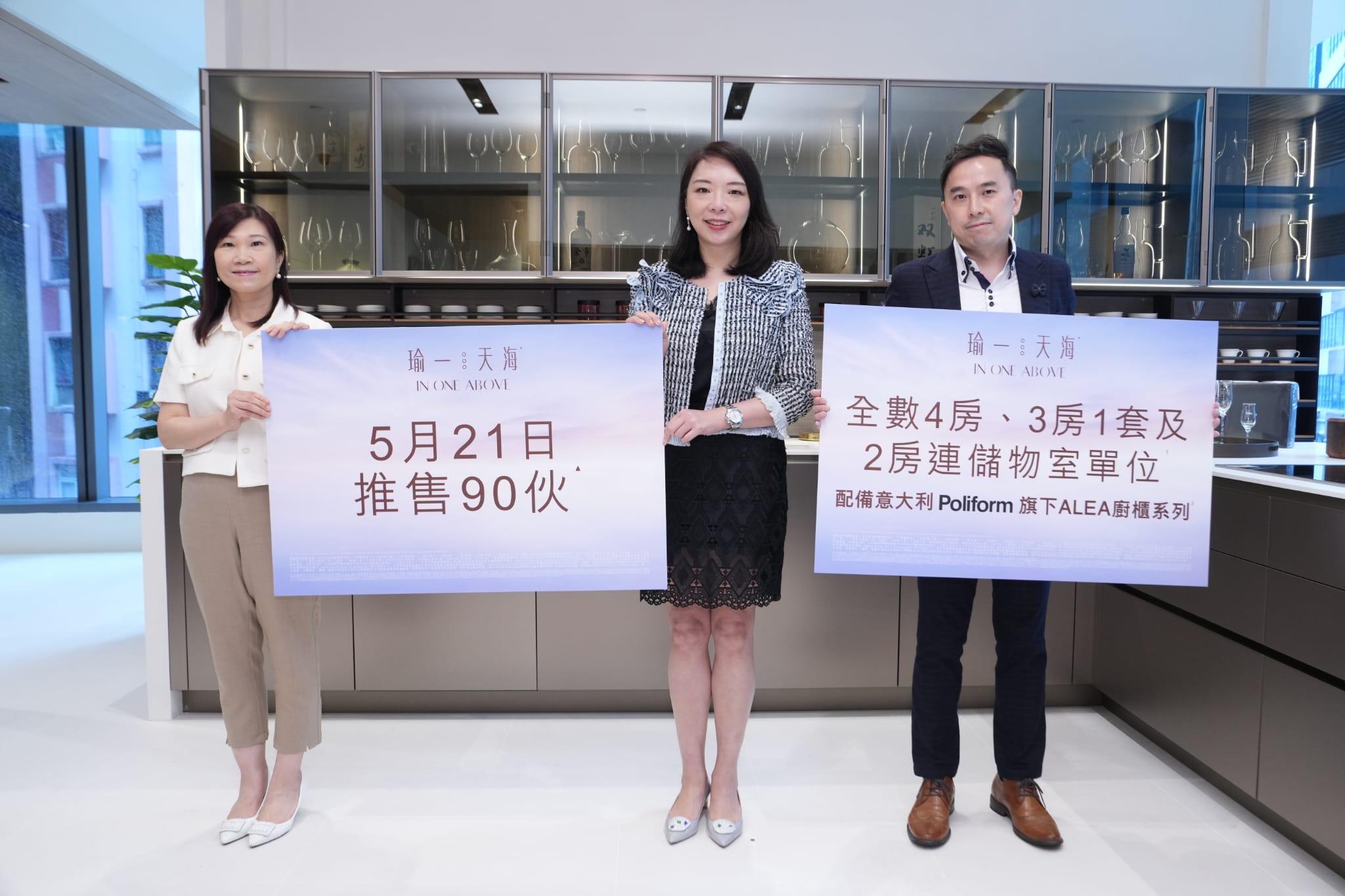何文田瑜一第IA期「瑜一.天海」將於本周日以價單形式推售90伙。圖左起:陳慕蘭、封海倫、蔡健文。(陳奕釗攝)