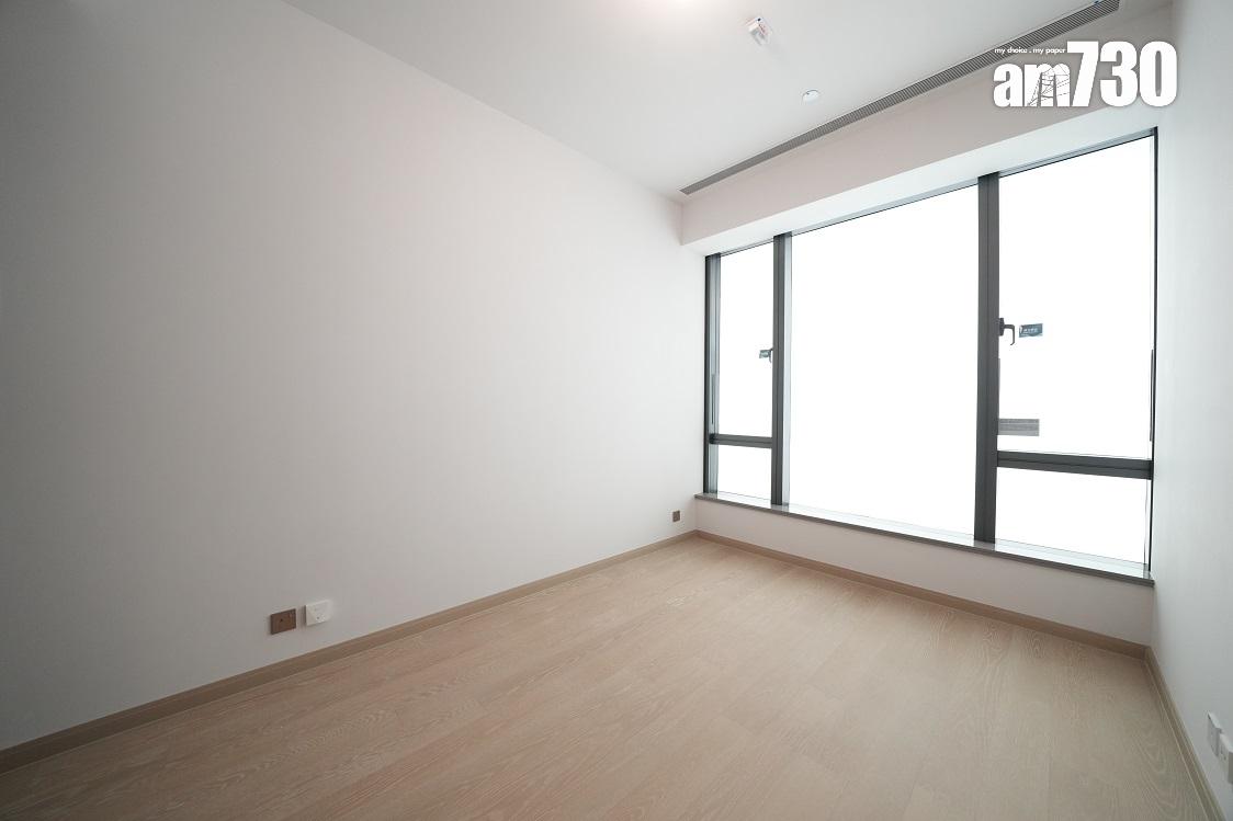 單位採用橫排式設計,客飯廳與所有睡房均享同一景觀,房內大玻璃窗除享戶外景致外,亦令室內採光充足。主人套房面積非常寬敞,除擺放雙人大床外,同時放置大型化妝枱連凳組合,房內流線型天花配襯單位的特色牆身。設計師將其中一間睡房改造成工作室,擺放鏡面及健身工具等。