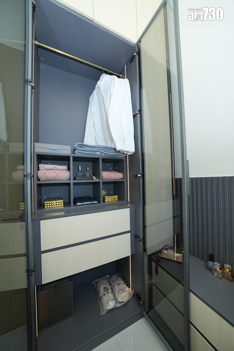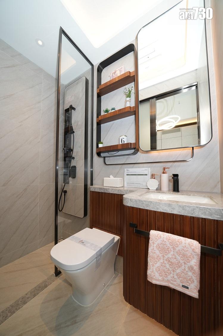主人房間隔靈活實用,放置雙人大床後、仍能擺放大型到頂衣櫃及床頭櫃,房間設有寬闊玻璃窗,增加室內天然採光。浴室鋪設高雅雲石,配以流線型鏡櫃,內置三合一充電座,並加設無線充電座;另設嵌入式衛生收納空間,配備貼心齊全。