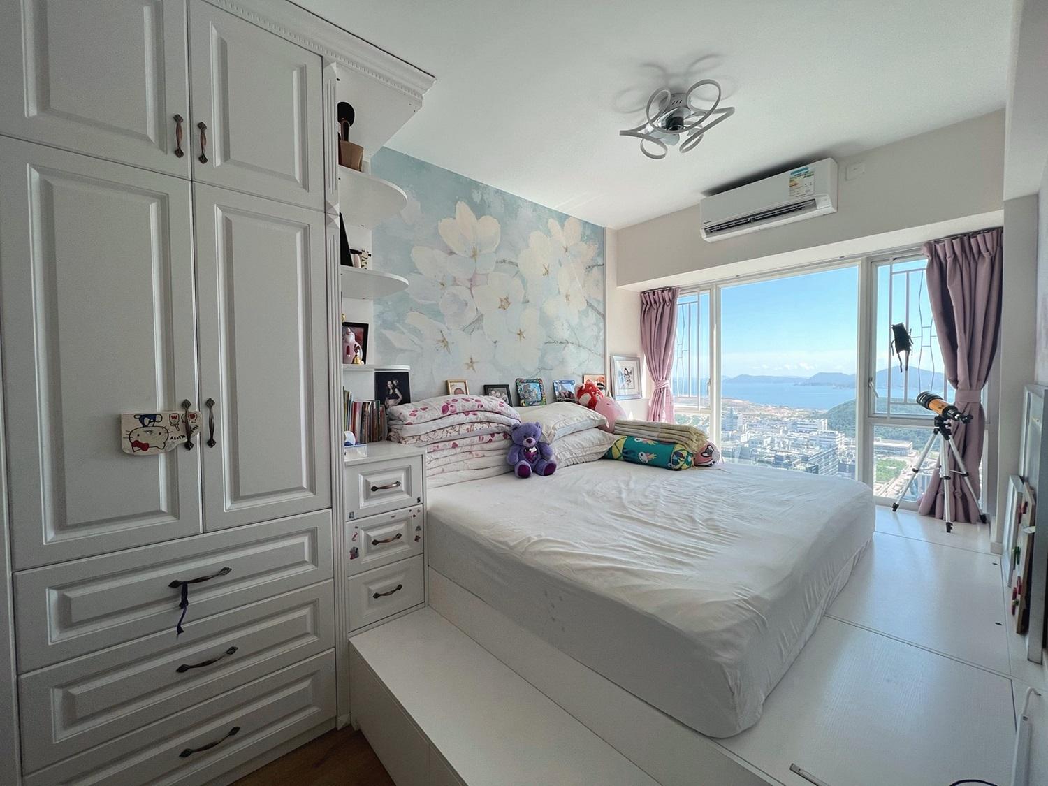 上述推介放盤為日出康城2期A領都1座(右翼)高層A室,實用面積964方呎,採四房連套房間隔,叫價1,500萬元,平均實用呎價15,560元。單位座向西南,面向將南一帶市景和海景,景觀開揚吸睛,而且單位實用率高,大廳外接露台,間隔四正實用,整體裝修保養亦得宜。由於單位採光度極高,加上以白色裝修及選用淺色傢具為主,在天朗氣清的日子,無遮擋的景觀格外吸睛,一室明亮舒服。