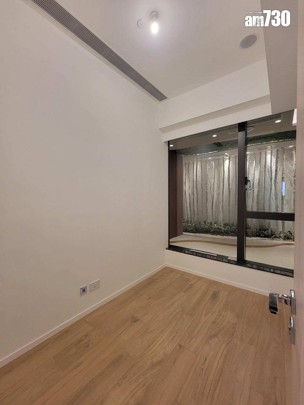 主人睡房與客廳同向,設有偌大玻璃窗,不單採光度高,同時更可享室外開揚景致。主人睡房長2.75米、闊2米7,即使擺放雙人大床仍可三邊落床。主人睡房以淺木色及米白色為主調,營造出溫馨愜意的氛圍;另一睡房間隔則較方正,長闊均逾2米7,可隨意擺放單人床及衣櫃等家具;除設有大型玻璃窗外,另一面牆身更設有轉角玻璃窗,採光及通風大大提升。