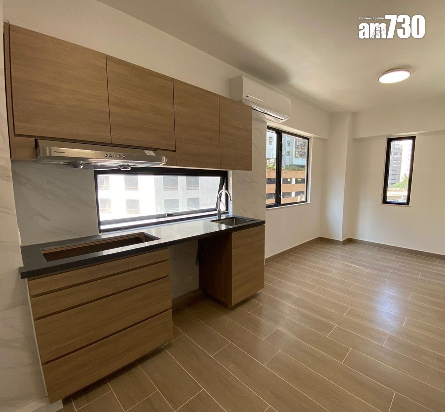 景輝大廈樓高24層,全盤有192伙單位,實用面積介乎267至465方呎不等。目前大廈低層G室放盤,實用面積有431方呎,間隔為兩房及附有平台,廚房採開放式設計,全屋裝修簇新,以啡色和米色為主調,廚房組合櫃亦以深色木紋設計,配以長形黑框大窗戶,設計時尚又實用。單位現連租約以485萬元放售,平均實用呎價11,252元,目前單位每月租金為13,800元,若成功以叫價485萬元成交,料新買家可享租金回報約3.4厘。