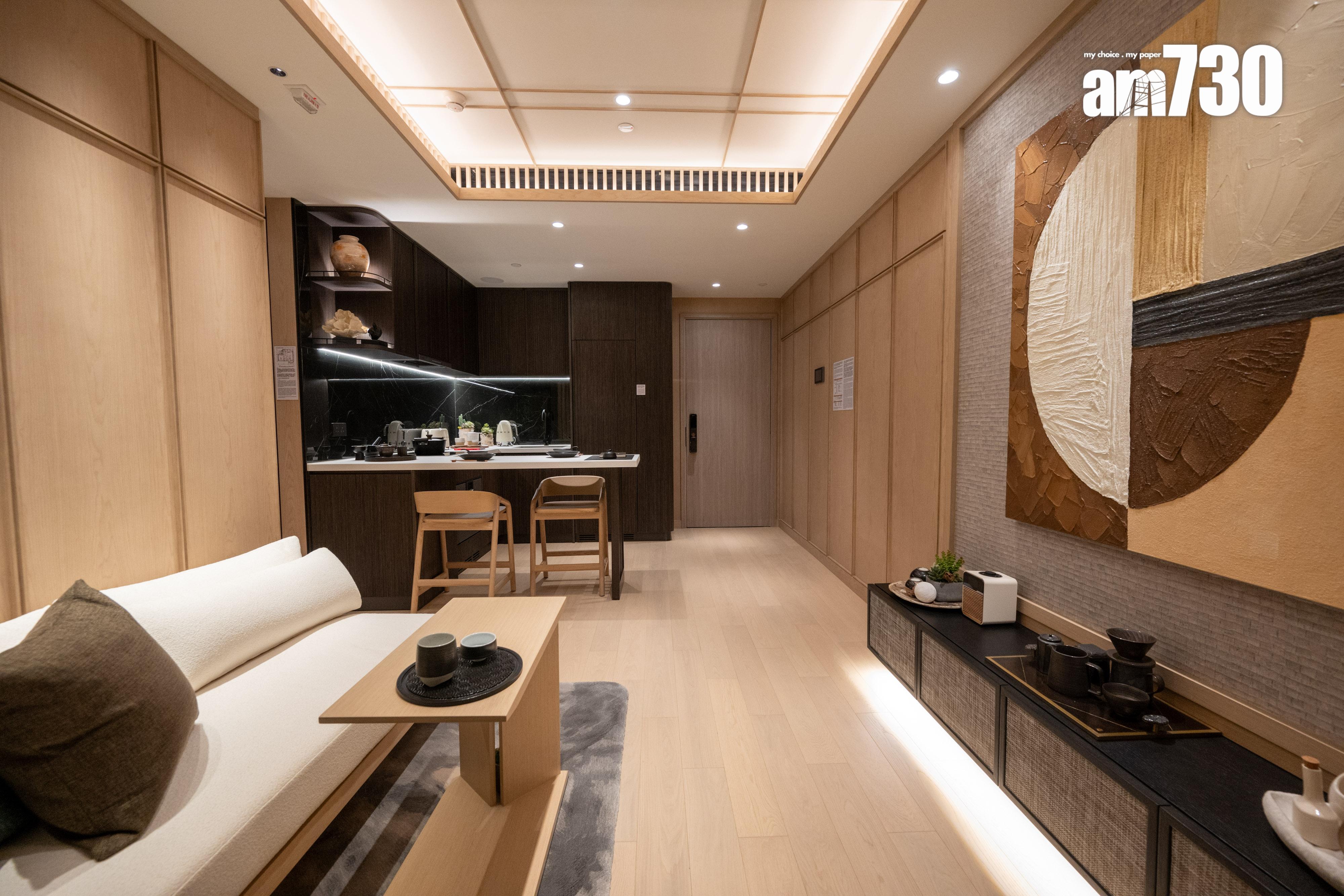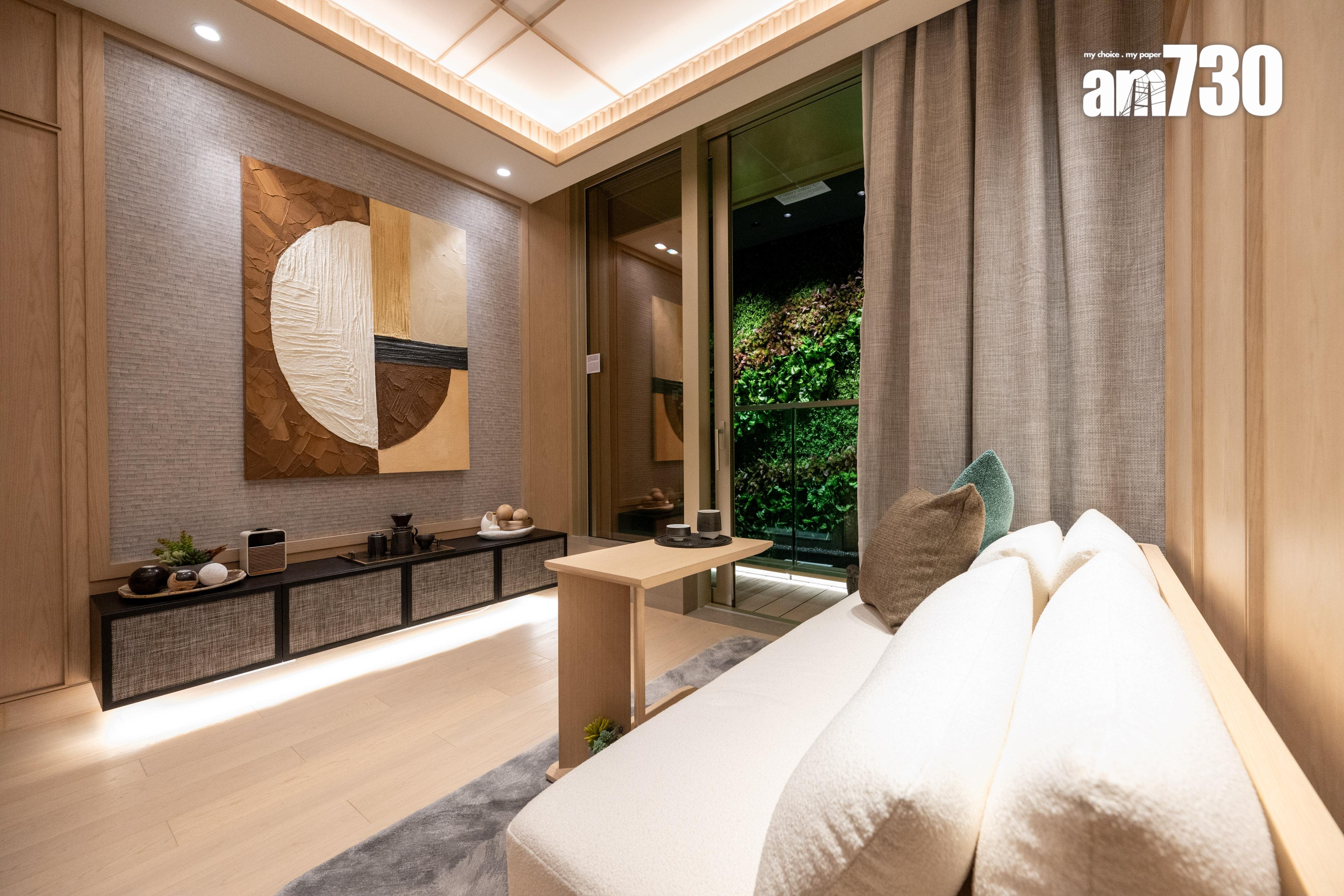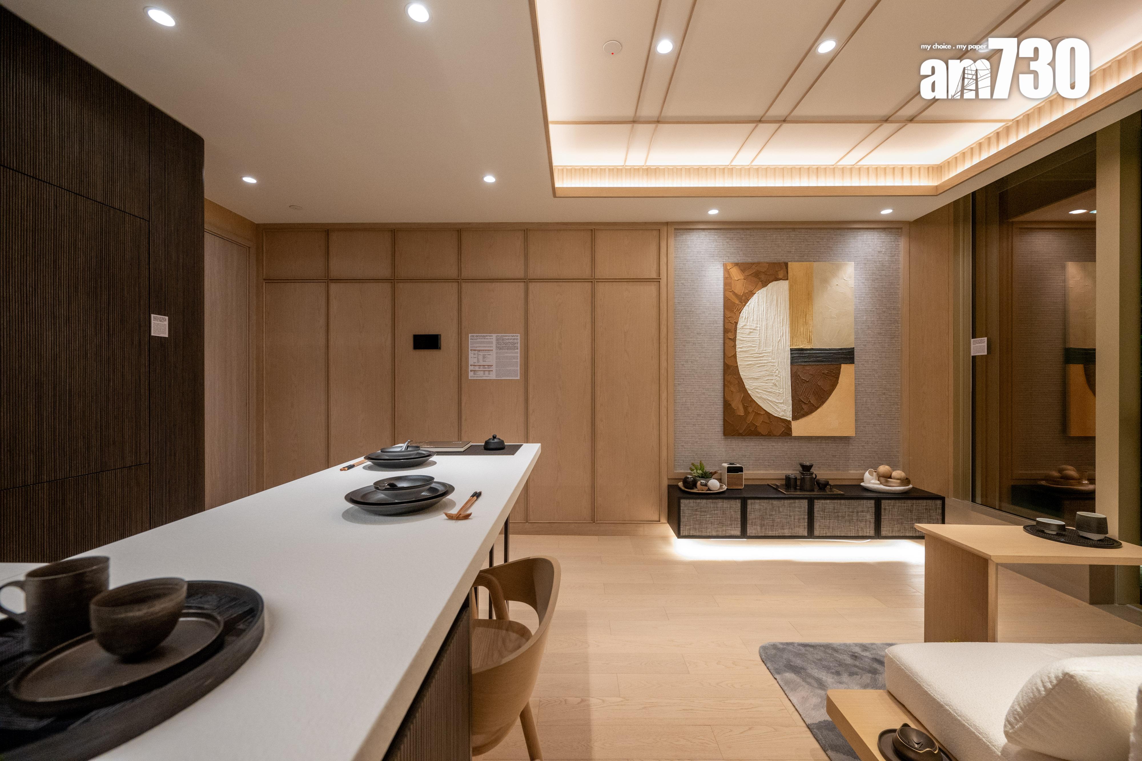 「峻譽.渣甸山」2座8樓D室經改動示範單位,實用面積435方呎,間隔為兩房設計,匠心打造近年大受歡迎的「JAPANDI」風格。單位以日式禪風為設計藍本,發展商為迎合翠綠渣甸山巒的景色,特意打造自然簡約的舒適風格,採用日式侘寂與北歐極簡的設計元素結合,整體空間讓住戶擁有寧靜悠然的居住氣氛。全屋單位為日系和大地色調為主,布局設計簡練、沉穩,整體家具利用樸素的內斂感呈現現代居家與禪風兼并的設計理念。
