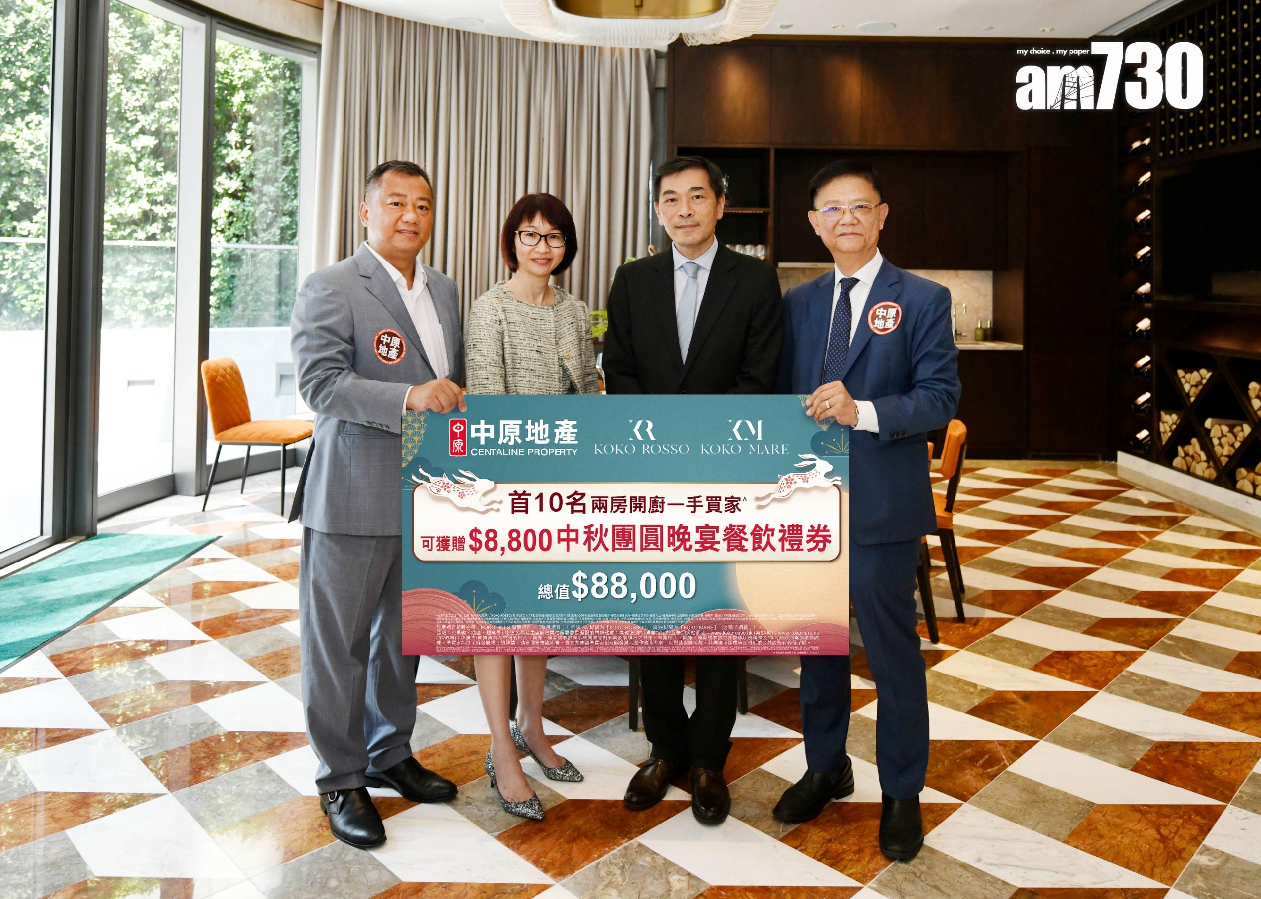 由即日(5日)起至本月22日,經中原地產購入「KOKO ROSSO」及「KOKO MARE」首10名兩房開廚的買家,可獲贈8,800元中秋團圓晚宴餐飲禮券,總值約8.8萬元。