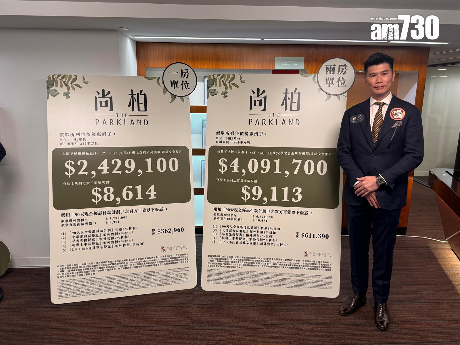 「尚柏」首張價單包括40伙一房及10伙兩房,實用面積介乎265至488方呎。扣除最高折扣13%後,折實售價由242.91萬至460.32萬元,折實呎價介乎8,614元至10,663元。據代理資料顯示,該區二手屋苑成交呎價介乎7,944元至16,179元;當中Grand YOHO報14,119元,朗屏8號報16,179元。
